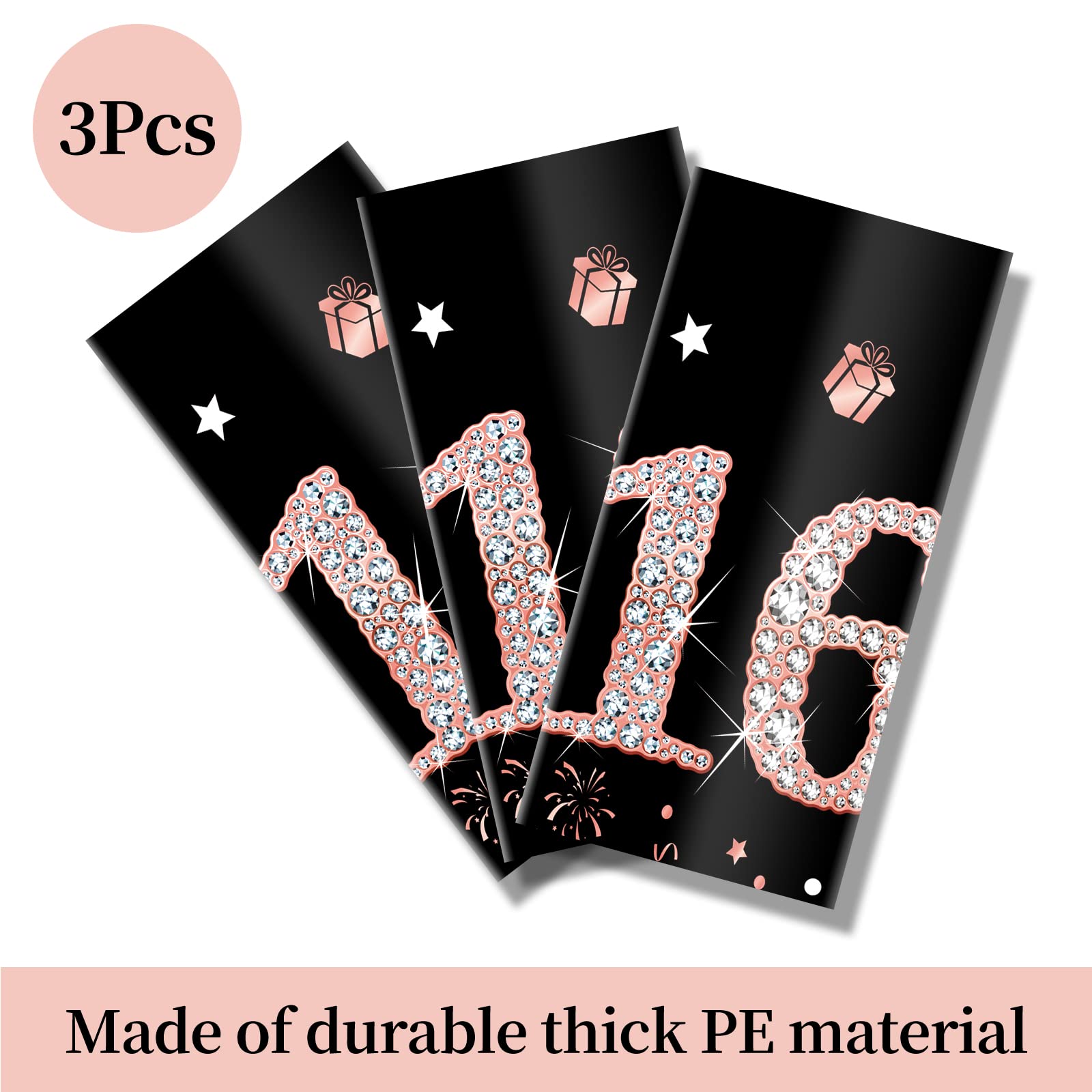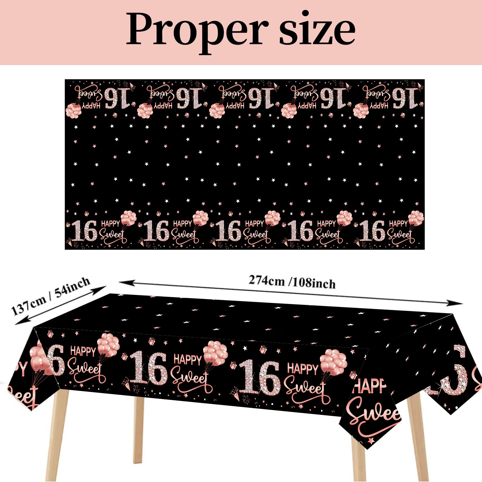 You Will Get: 3Pack rose gold 16 birthday tablecloth decorations for girls. 54 x 108 inches, suitable for covering most rectangular desktops. Note: Please measure the table size in advance
