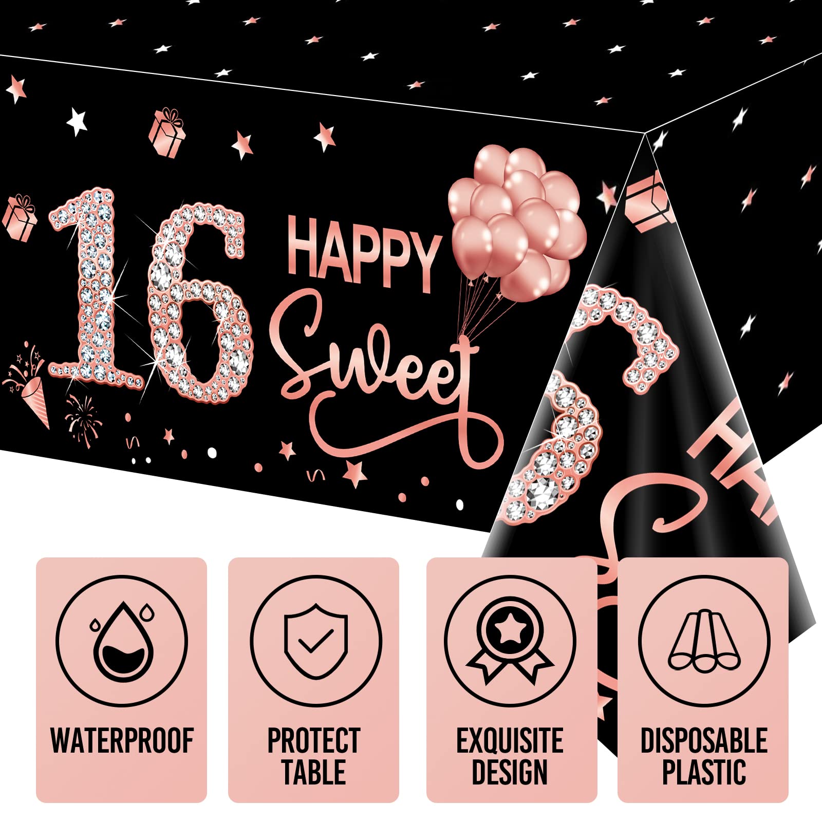 Wide Range of Use: It is suitable for 16 year old birthday party table decorations for girls, indoor and outdoor use. The rectangular tablecloth can be used to decorate your dessert table and party table. It will be a background for party photos
