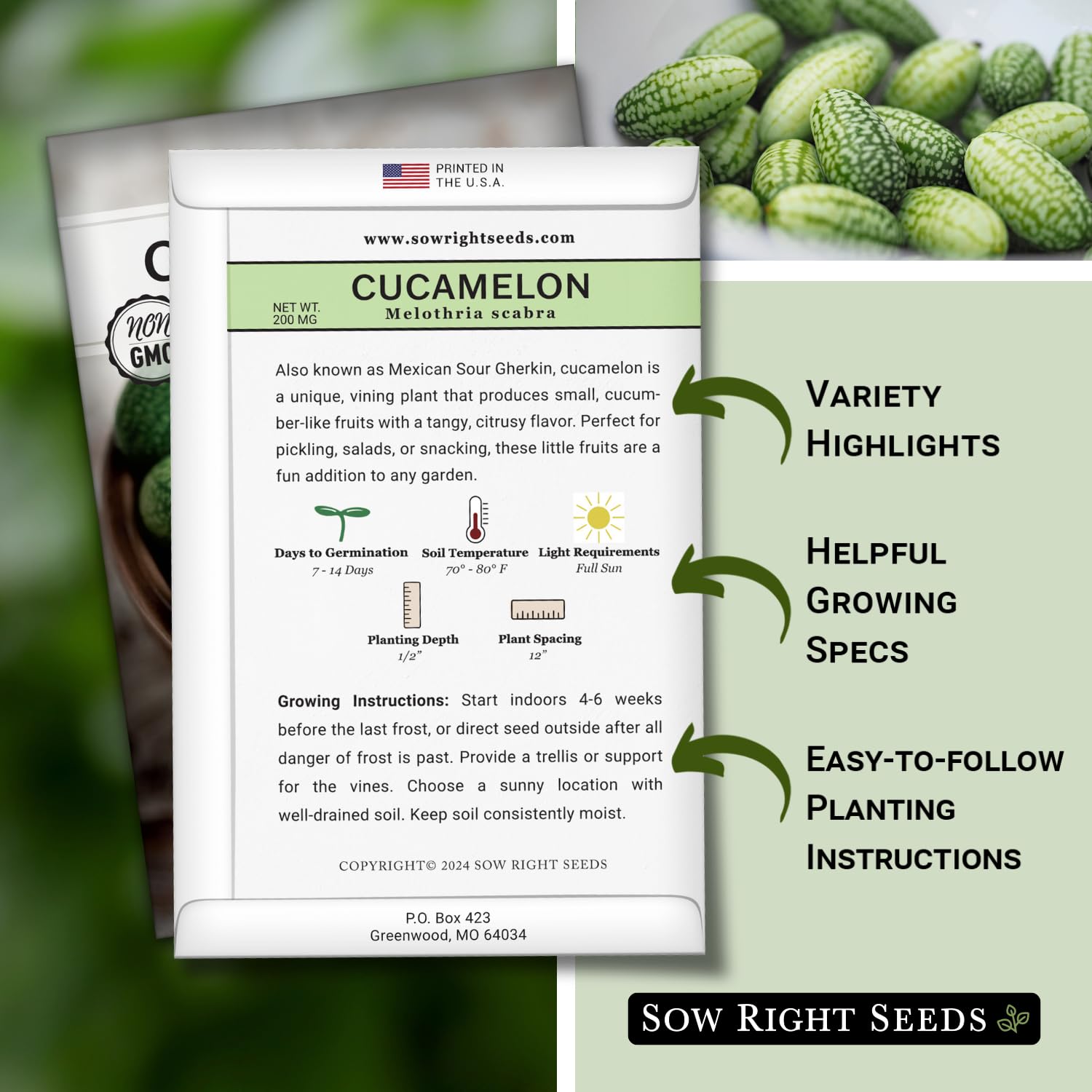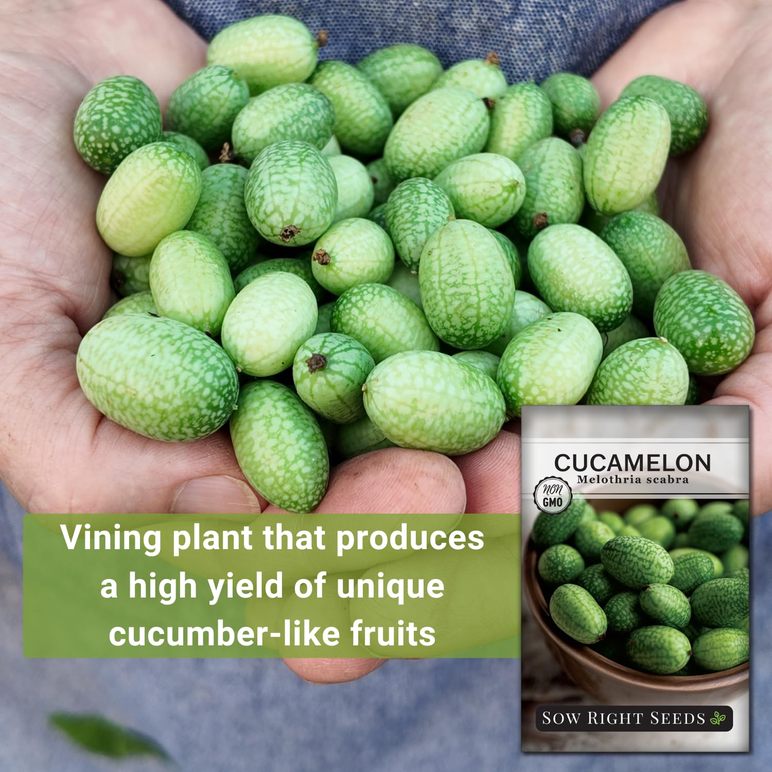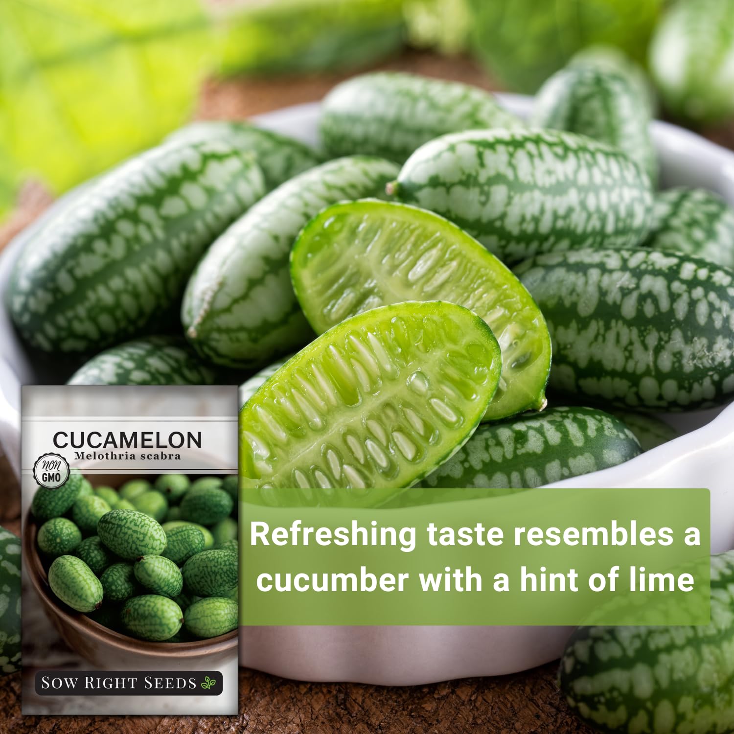 Beautiful – Large premium packet of Cucamelon (Melothria scabra) seeds. Also known as Mexican Sour Gherkin, cucamelon is a unique, vining plant that produces small, cucumber-like fruits with a tangy, citrusy flavor. Perfect for pickling, salads, or snacking, these little fruits are a fun addition to any garden. Minimum of 200 mg per packet (about 65 seeds).