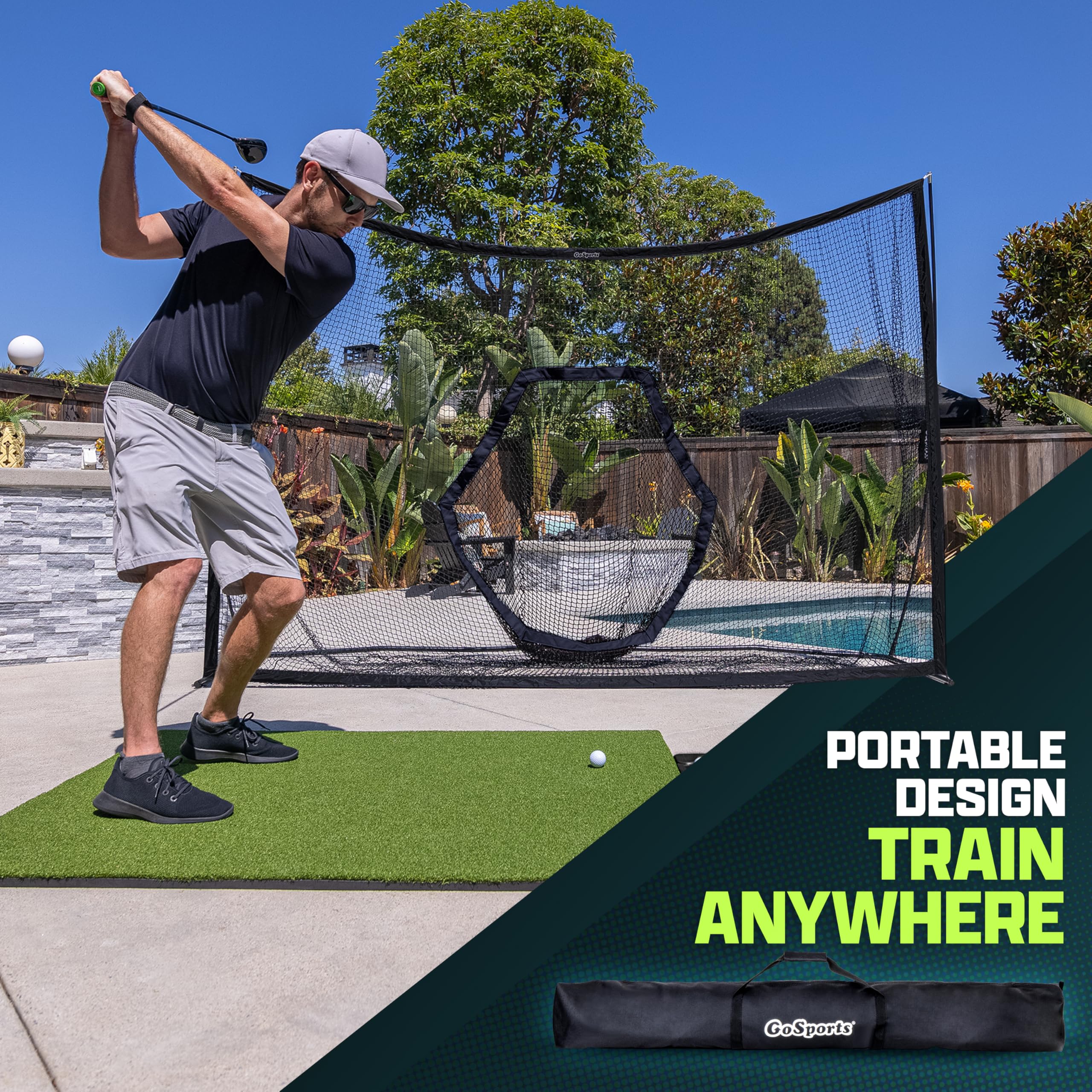 The GoSports 10 ftx7 ft PRO golf net builds upon our #1 selling GoSports 10 ftx7 ft golf net and takes it to the next level with 2x stronger netting to make for the ulimate training net. The net is designed to help golfers train in several key areas: mastering your swing and practicing driving, chipping, ball striking and more . Golfers can now focus on swing mechanics and technique at home, in the backyard or in the garage - perfect for practicing anytime, anywhere. The distinctive hex shape pocket is designed to look good and stand out from the crowd while also collecting balls during practice. The net sets up in 90 seconds so it can easily be assembled and broken down for storage in the included canvas carrying case. The net is made using a powder coated bow type steel frame with a robust 8-ply net (2x stronger than standard) to withstand years of use. This is a must-have for any golfer looking to take their game to the next level.