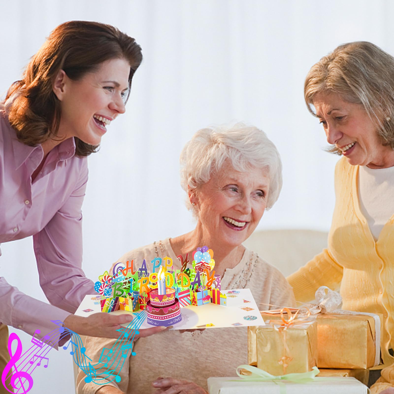 Blow This LED Candle Like A Real One: Instead of those boring cards that do nothing or play no music, this lovely 3D musical birthday card features a pop up effect while playing a happy bday song with colorful lights flashing at once the 90 birthday person opens it. Their jaws will drop! Thanks to a fun LED candle, they can blow this candle like on a normal cake, then it will plays an audience cheers. Our unique greeting card is sure to make that special birthday person feel cherished and loved