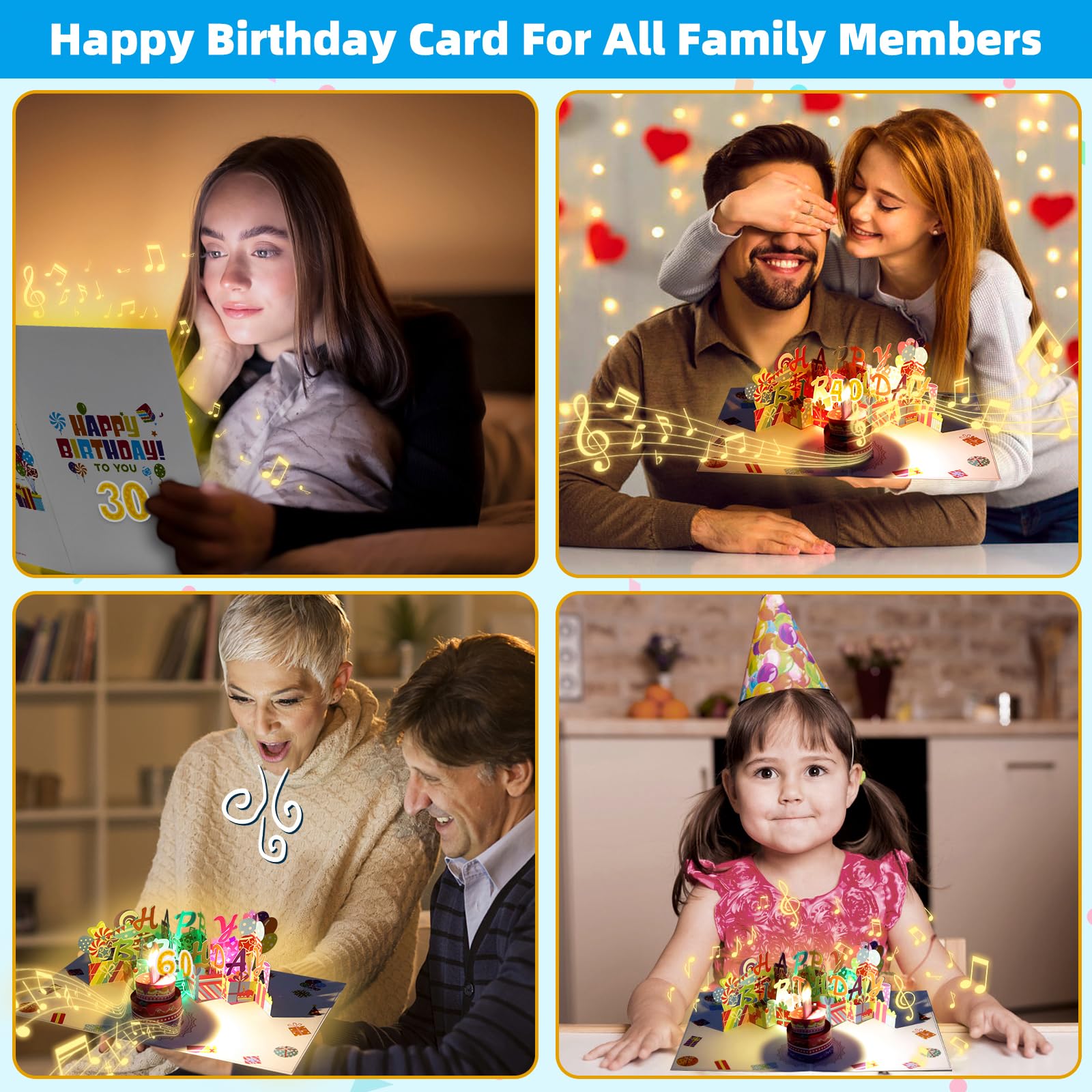Truly Magical 90TH Birthday w/ Lights & Music: Present this 3D pop-up Happy Birthday card to that special women or men, celebrate her/his 90 years old birthday with a truly memorable birthday greeting with lights & music. They'll be all smiles when they open this cute card, greeted by classic birthday song, in sync with color-changing lights. More amazingly, our greeting card ends with a cheering sound after she/he blows the candle