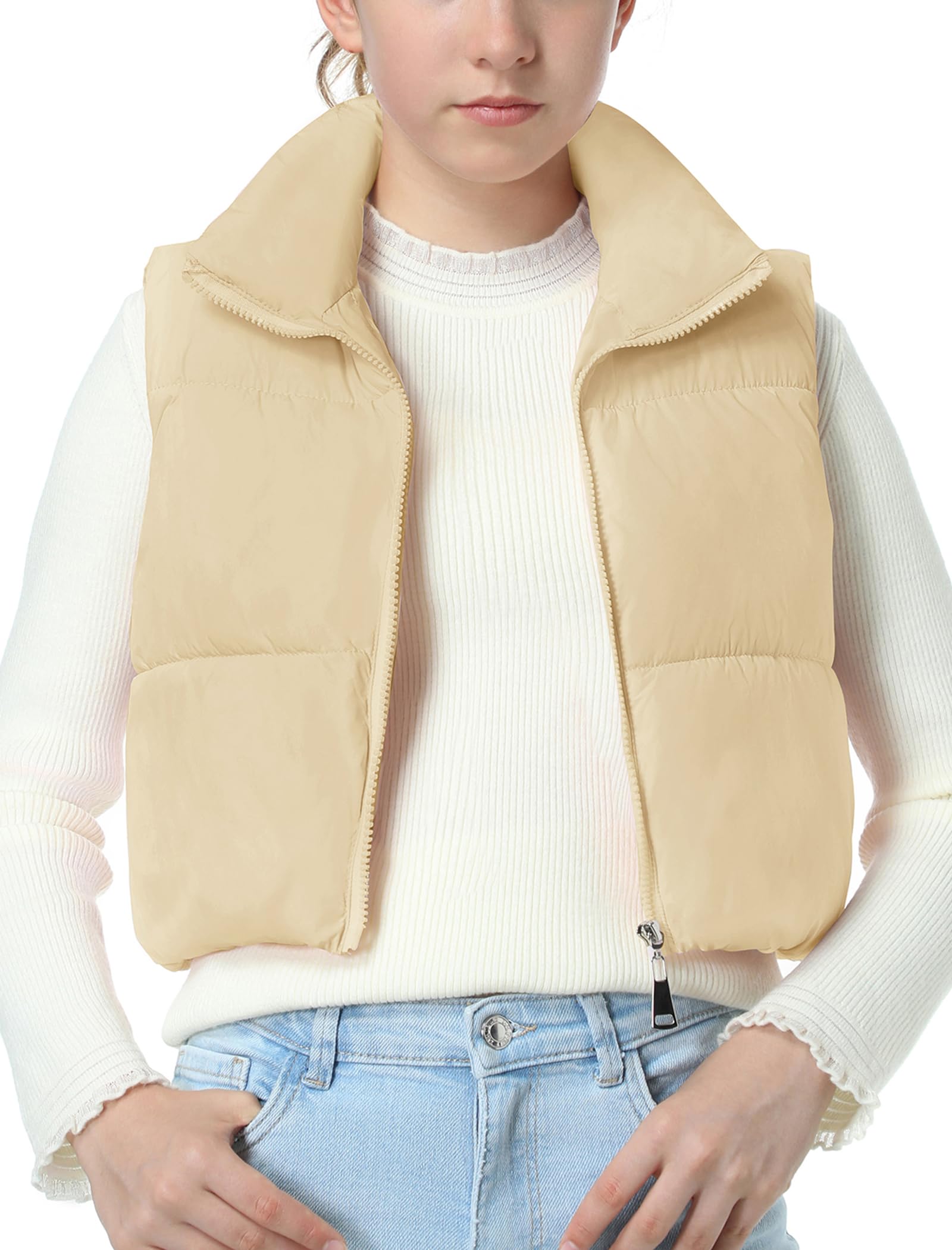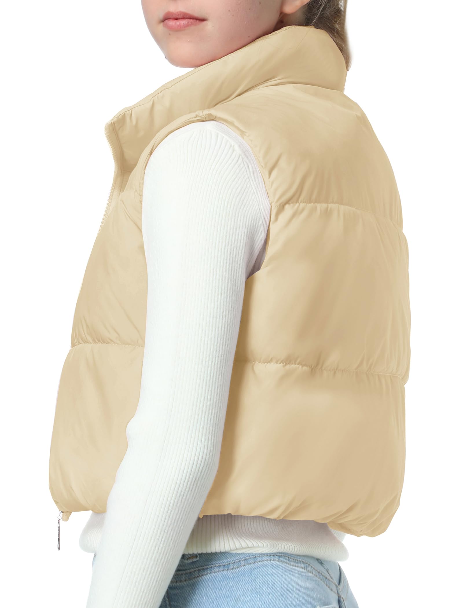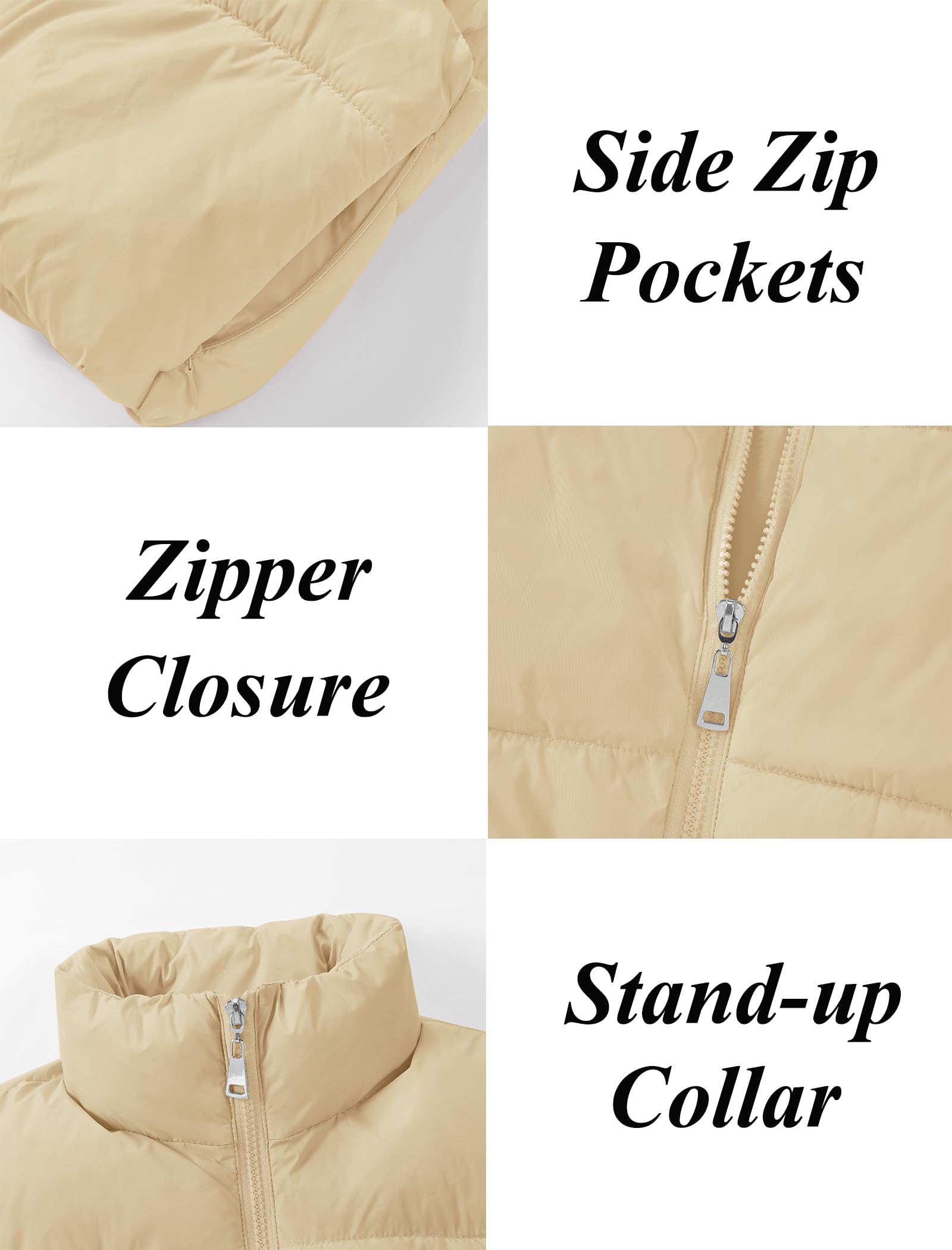 Puffer and Warm: The cropped vest has a sleeveless bodice with a smooth zipper. The stand collar traps heat and block cold to keep your neck warm. Two zipper pockets offer a cozy spot for your hands