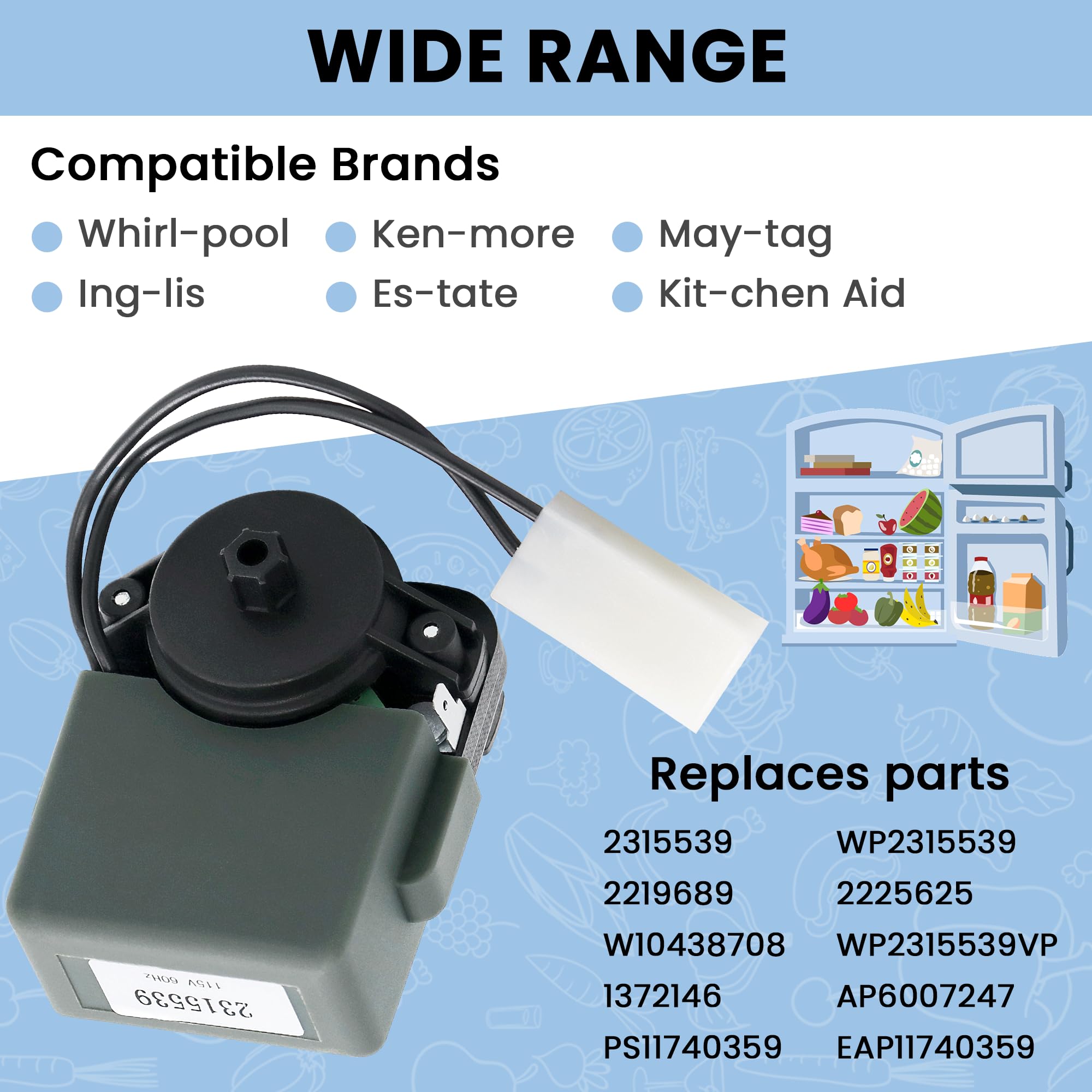 BUY WITH CONFIDENCE: 2315539 Refrigerator Evaporator Fan Motor supports 180 days return and exchange. If you have any question about this 2315539 Refrigerator Evaporator Fan Motor, please feel free to contact us through amazon email or question and answers, we will solve your problem within 24 hours,Don’t hesitate to solve the refrigerator problem easily