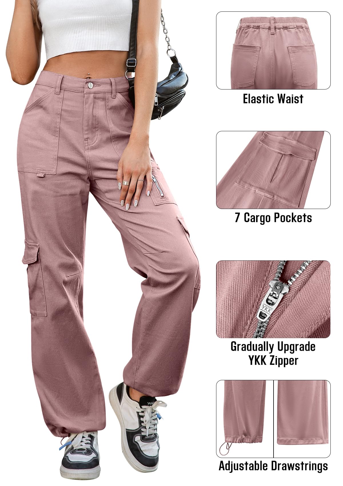 Comfy & Soft Materials: The cargo pants women baggy made of high-quality cotton and soft elastic wear-resistant fabric. High stretch, lightweight, breathable, skin-friendly and comfortable to wear in all days.