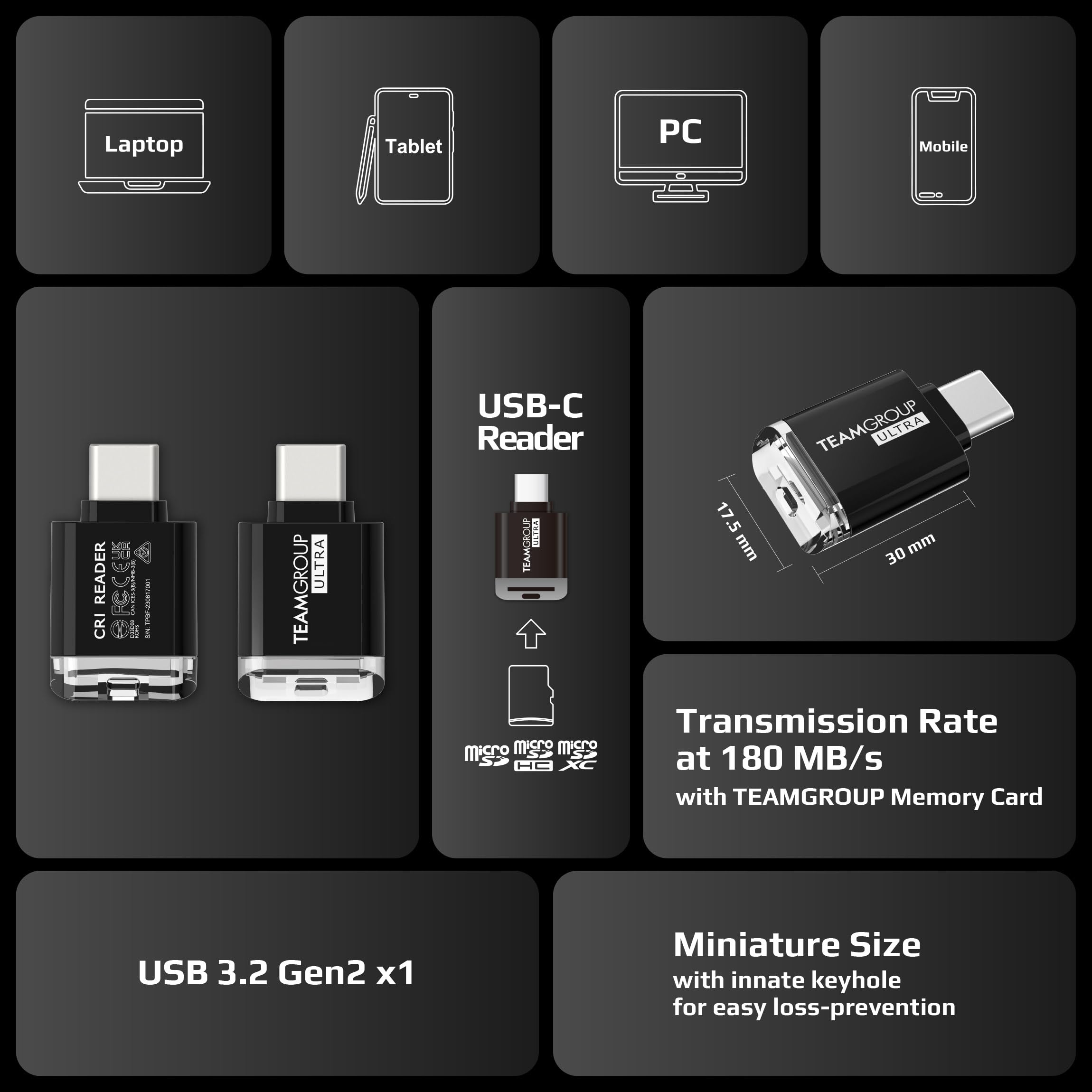 TEAMGROUP ULTRA CR I MicroSD Memory Card Reader with USB Type-C TWCRIB01