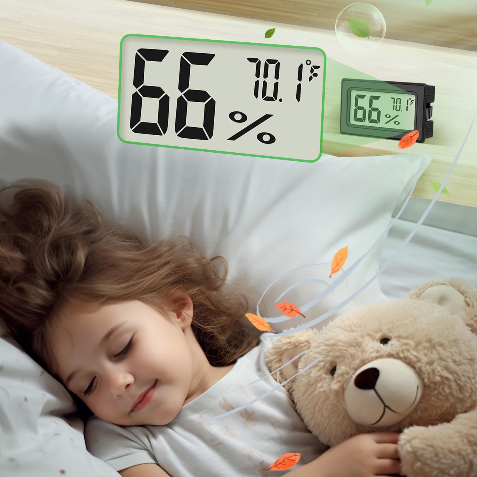 Easy to Read & Use:Mini digital hygrometer thermometer featuring a clear digital display, temperature humidity monitor allows you to quickly check the conditions of your room, greenhouse, or any other indoor space. Its compact size makes it easy to place anywhere, providing a discreet yet functional monitoring tool.