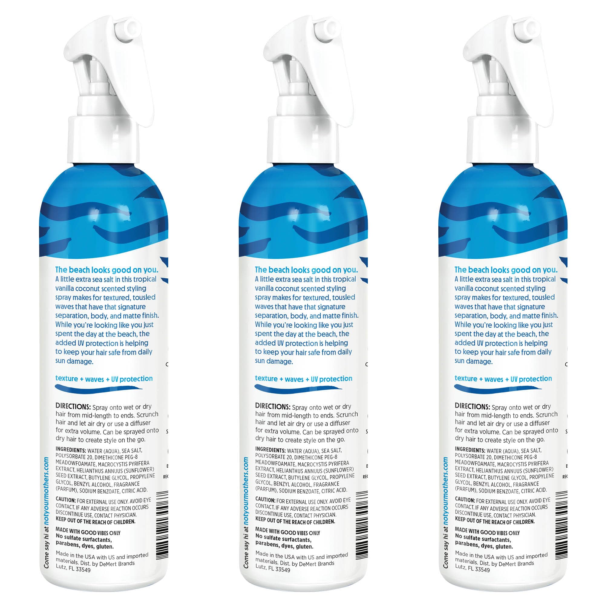 BEACH BABE SPRAY FOR TOUSLED HAIR: Hair texturizing spray creates beach waves with separation and body topped with a matte finish; Tropical Vanilla Coconut scent