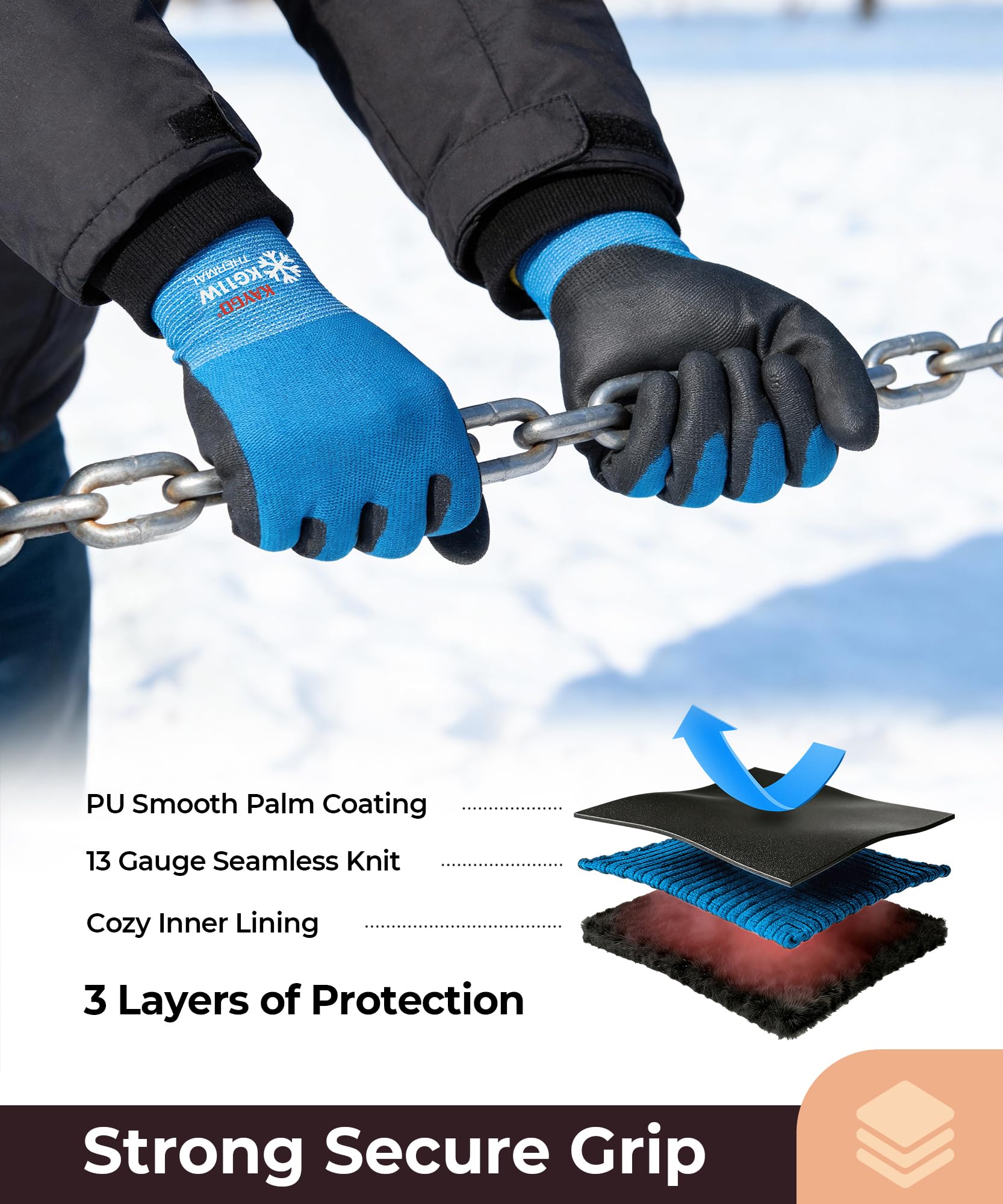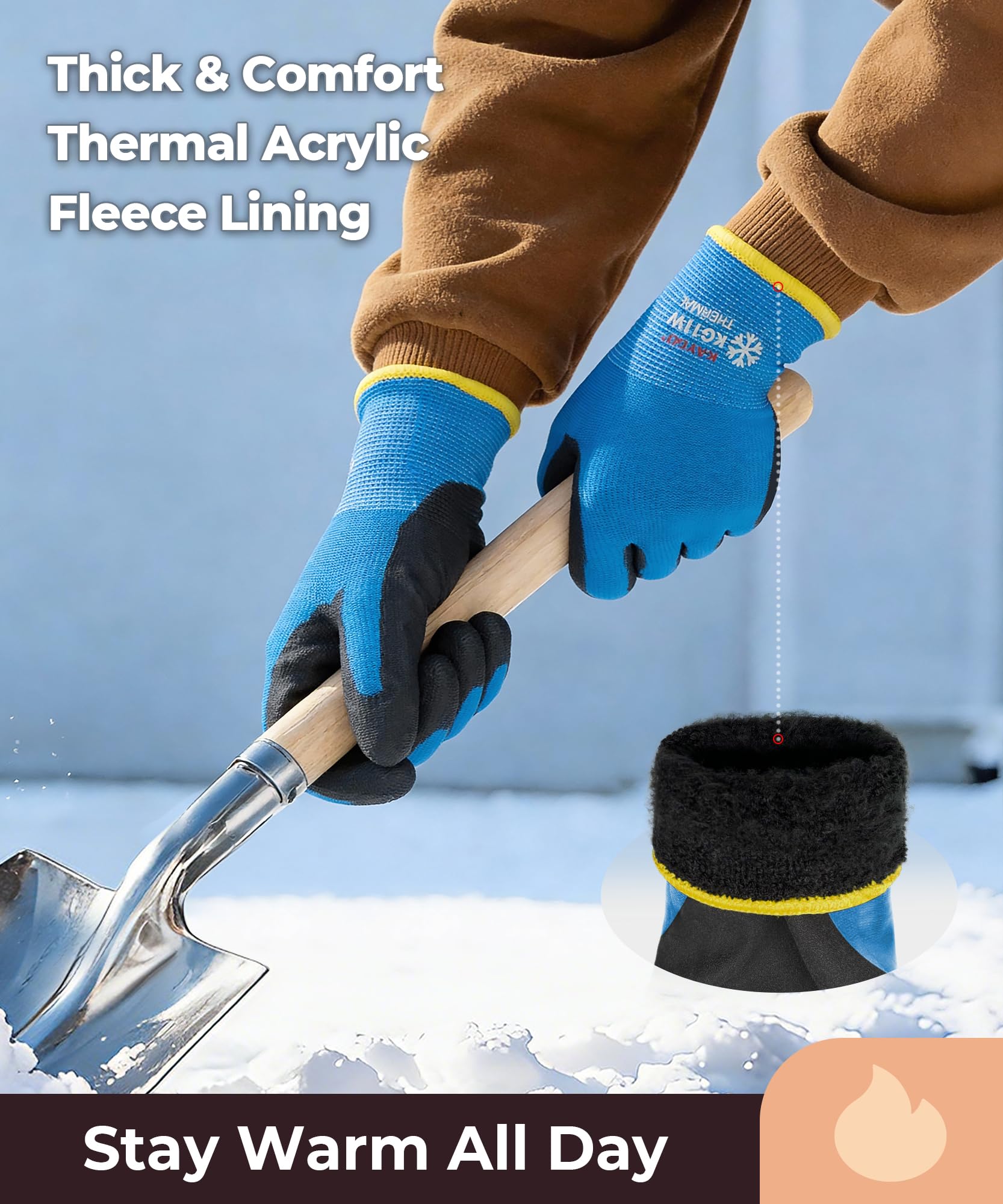 Warm and Flexible: KAYGO winter work gloves provide two layers of fabric, thermal liner keep your hands warm in below freezing temperatures.