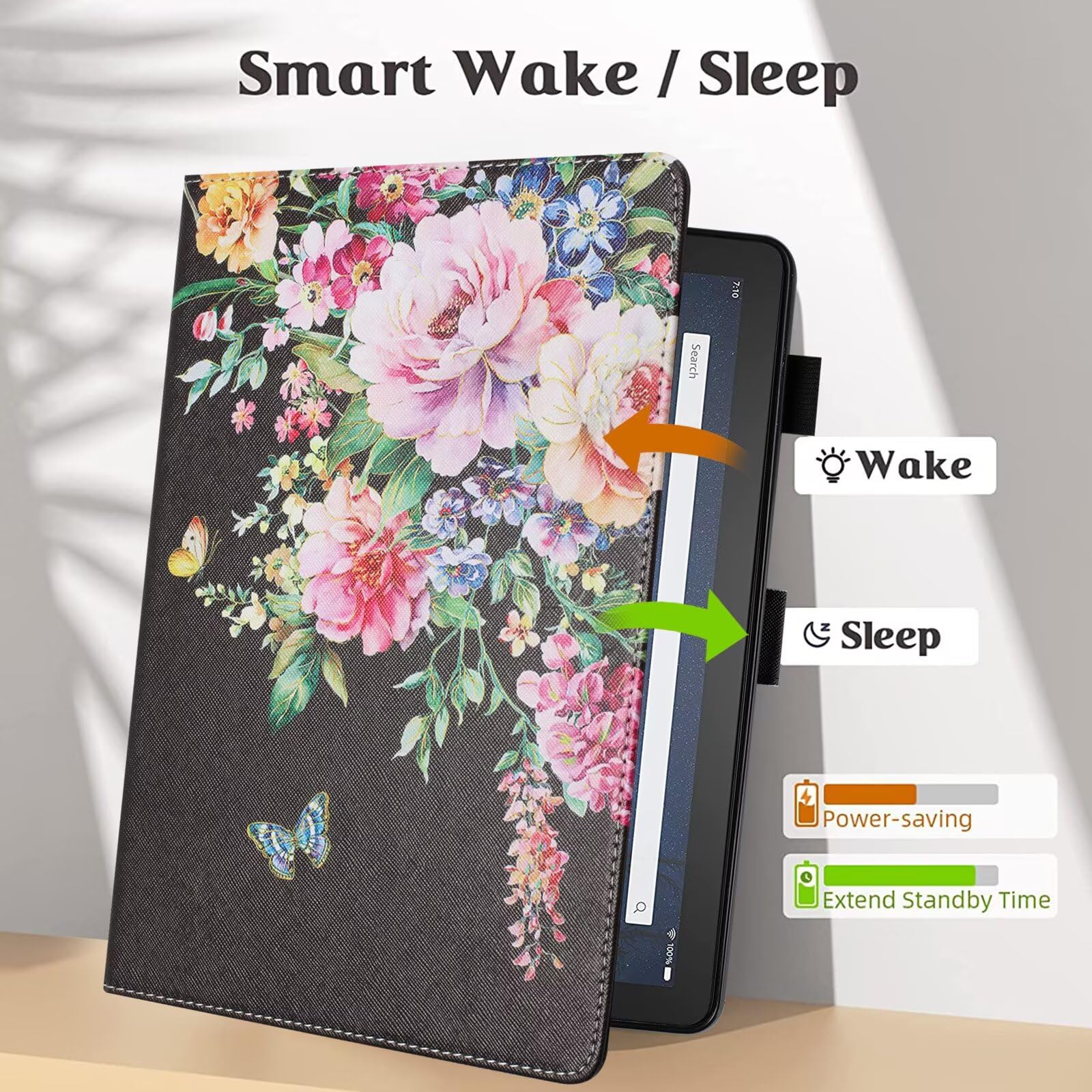 Smart Auto Wake / Sleep: Equipped with a built-in magnetic strip, the case automatically wakes the tablet when the lid is opened and puts it to sleep when the lid is closed. This helps to conserve battery life