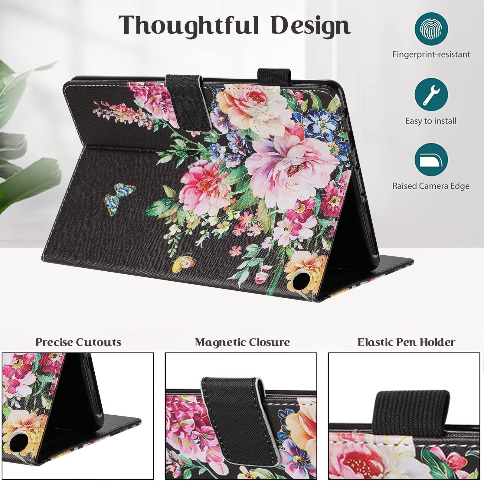 Stand Function: It has a built-in stand and non-slip strip that allows the tablet to be propped up in a horizontal position, enabling hands-free viewing for watching videos, reading, or video chatting. The stand design may offer multiple angles for optimal viewing comfort