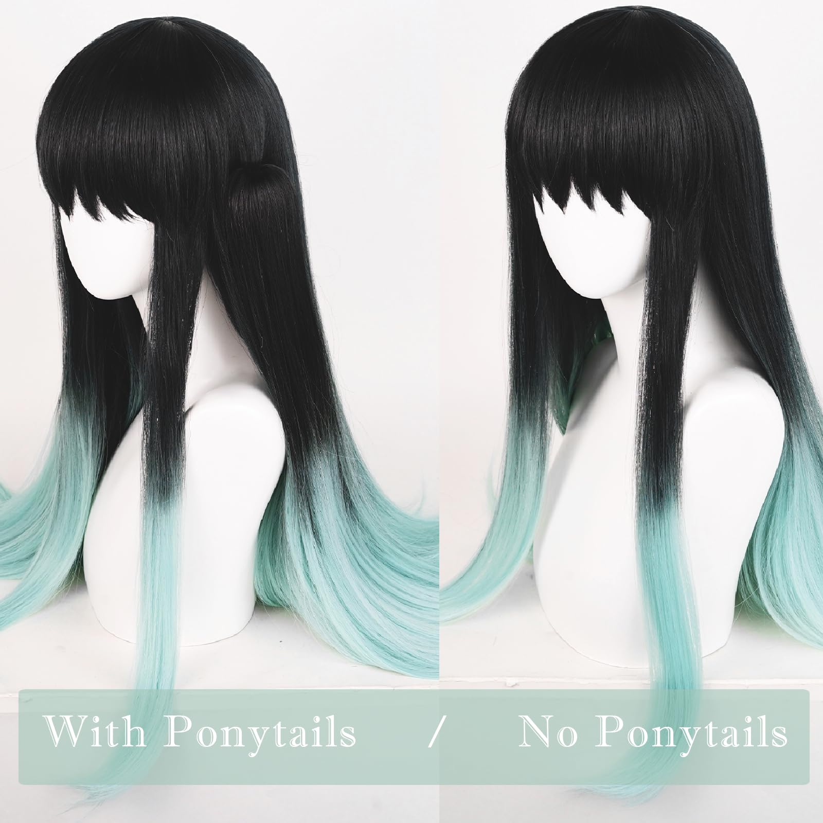 CHARACTERS: Wigs for Tokitou Muichirou cosplay costume and characters in black green hair wig with ponytails
