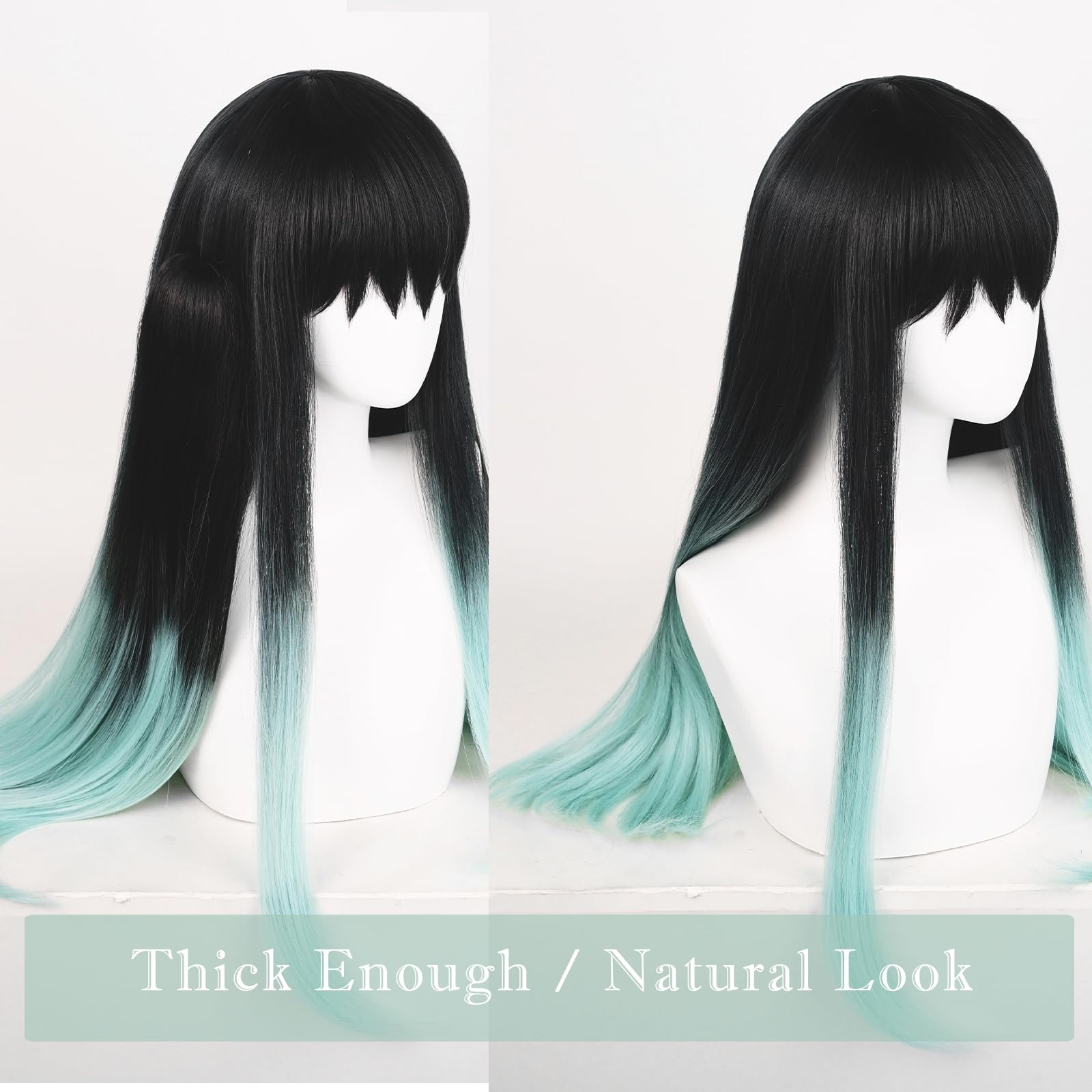 PACKAGE INCLUDES: Package included a black green muichirou wig + 2 ponytails + a cap(to hold your hair in place before putting on the wig). The adjustment range of the wig is 1-4 inches, and the head circumference is 19.6-23.6'', suitable for most people