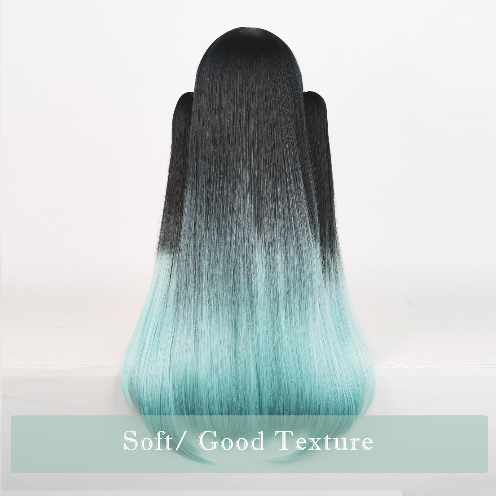 HIGH QUALITY MATERIAL: Made of high-temperature resistance synthetic fiber, this black ombre green wig for women is easy to style and manage. Can be heat styled with tools like curling irons or straighteners within 350°F. Good texture and durability, soft to the touch, just like real hair