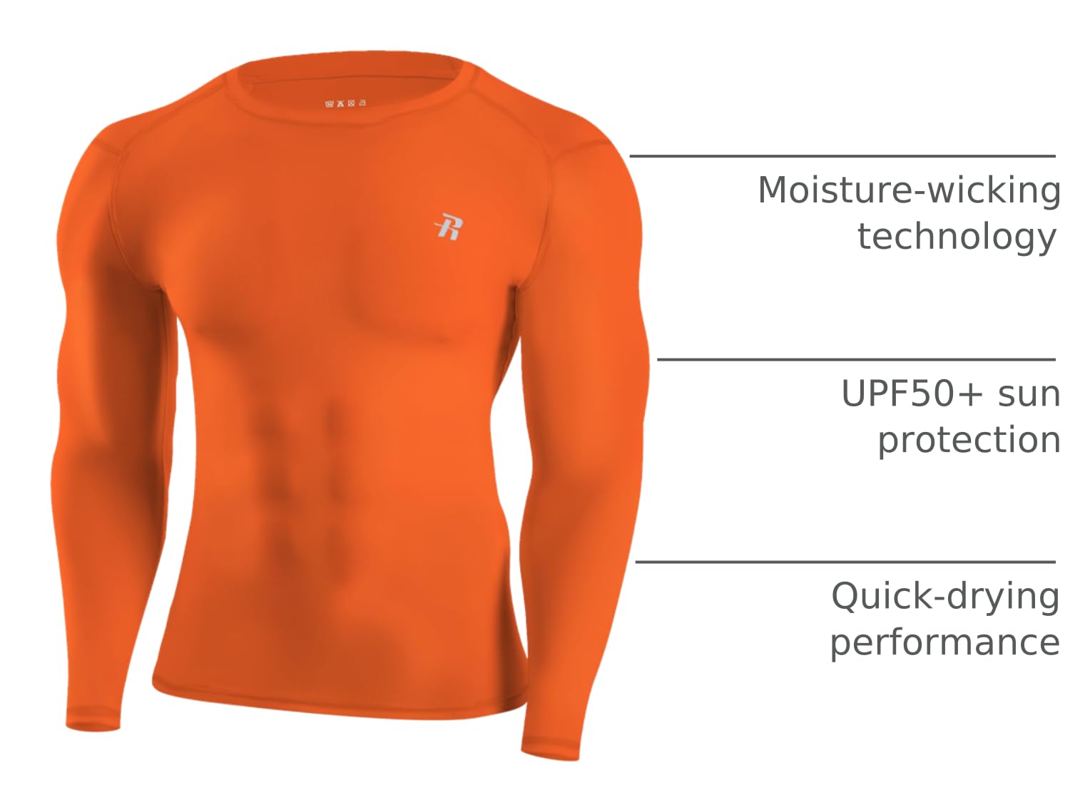 UPF50+ Sun Protection: The fabric of long sleeve compression rash guard for men undergoes special treatment to achieve UPF50+ level sun protection, offering outstanding UV protection to ensure your skin receives maximum protection during outdoor activities, especially on sunny days.