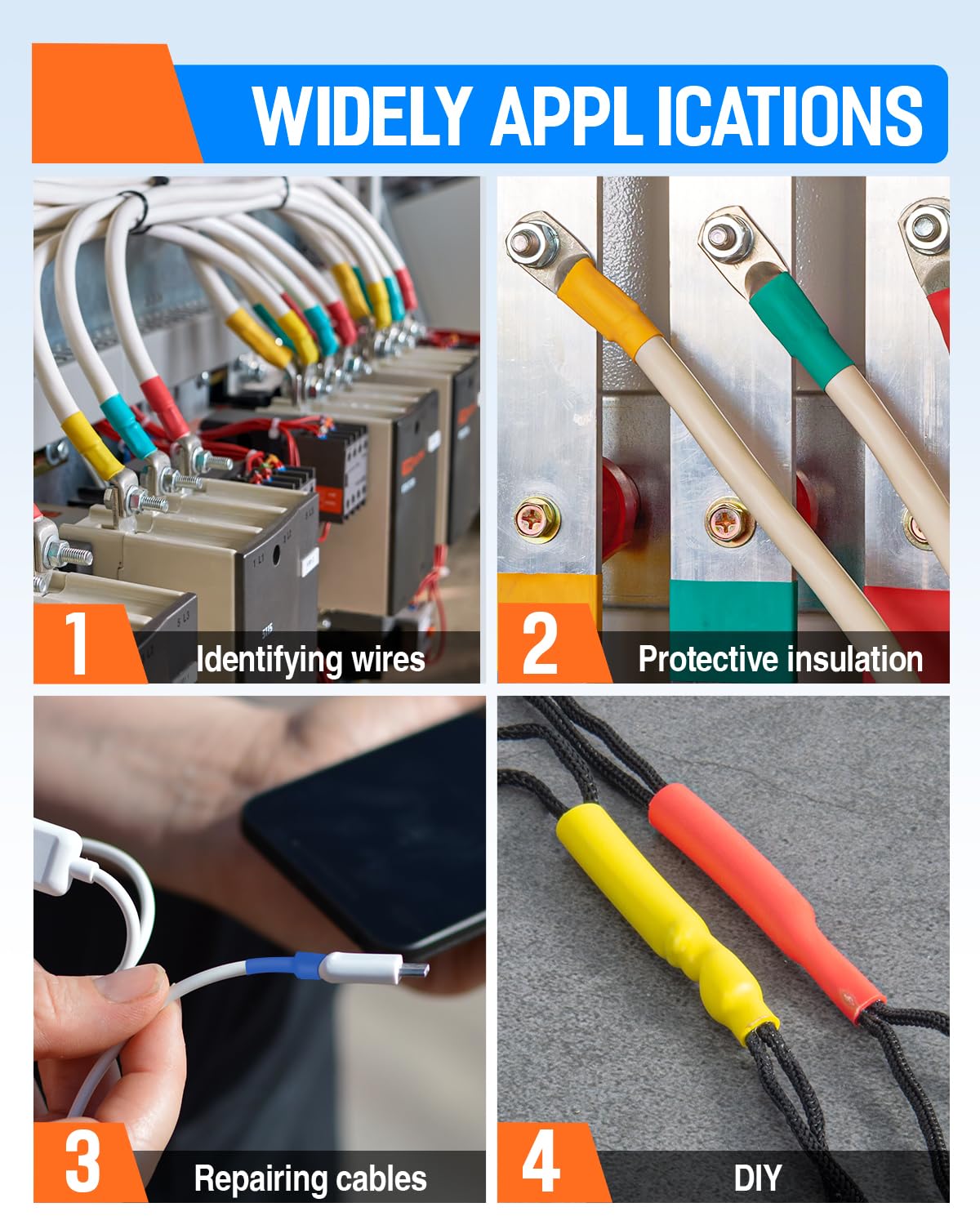 EASY TO USE: Each piece of the Heat-Shrink Tube is sufficiently long. Simply slide it over the wire and apply heat using a heat gun, lighter, or candle for quick, even, and tight shrinkage. Suitable for both beginners and experienced DIY enthusiasts