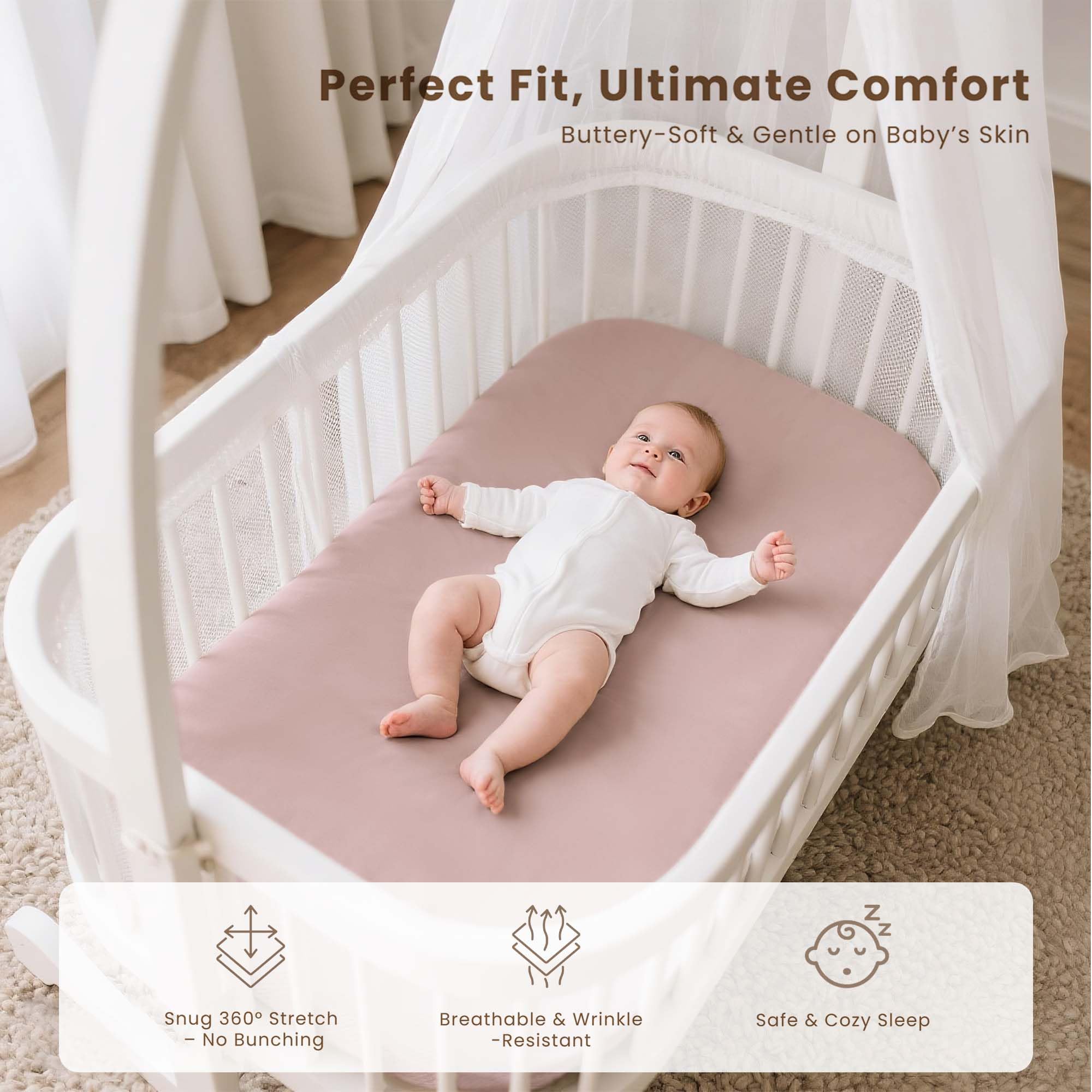 Easy To Care: Machine washable and durable, these bassinet fitted sheets maintain their softness and shape after every wash. Built to last, they ensure a fresh, clean sleep environment for your baby with long-lasting durability