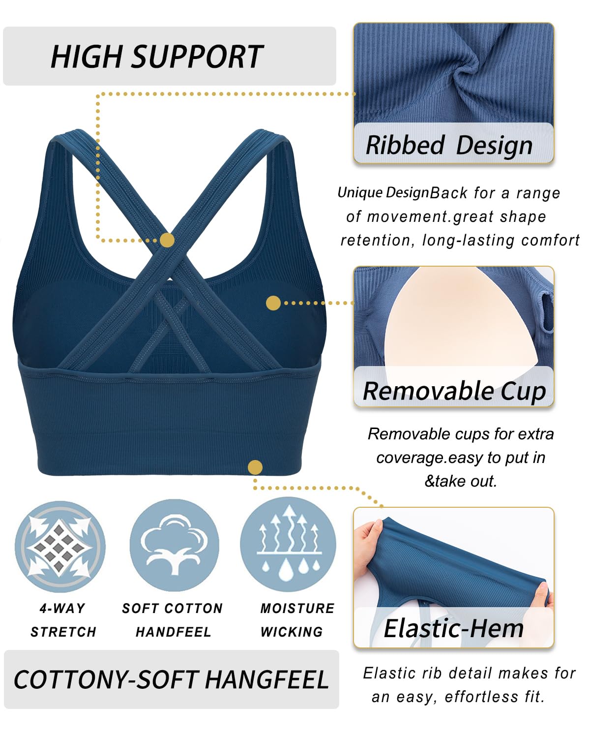WHY WE MADE THIS:Need a sports bra that does it all? Look no further.This sweat-wicking cross-strappy sports bra gives you the coverage and support you need for yoga, run,and the gym—without restricting your movement or breath fabric has added lycra that allows the sports bras for women to stretch with you and retain its shape over time.Slip in optional for full coverage—if you want it.This high impact sports bras for women is intended to provide great shape retention,long-lasting comfort.