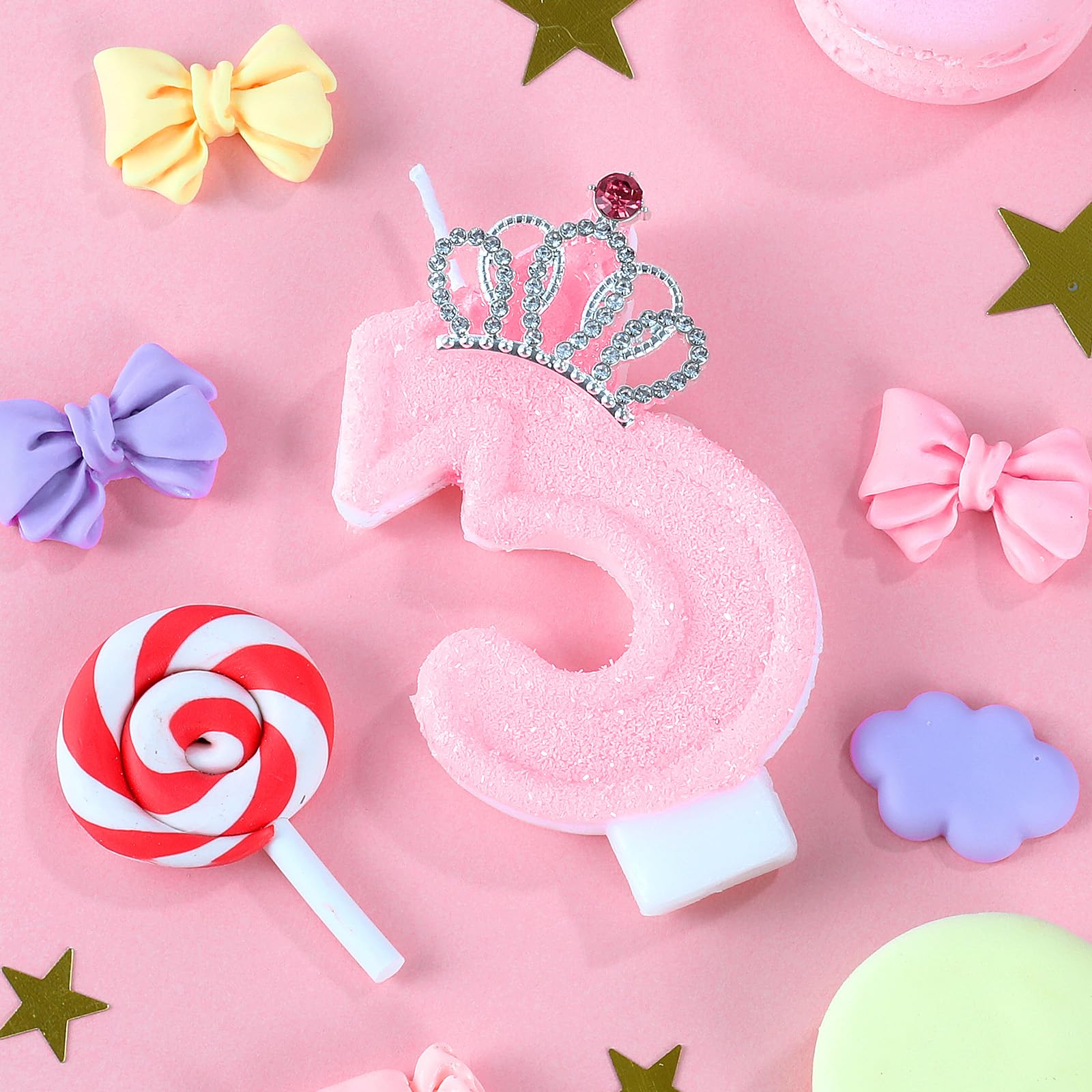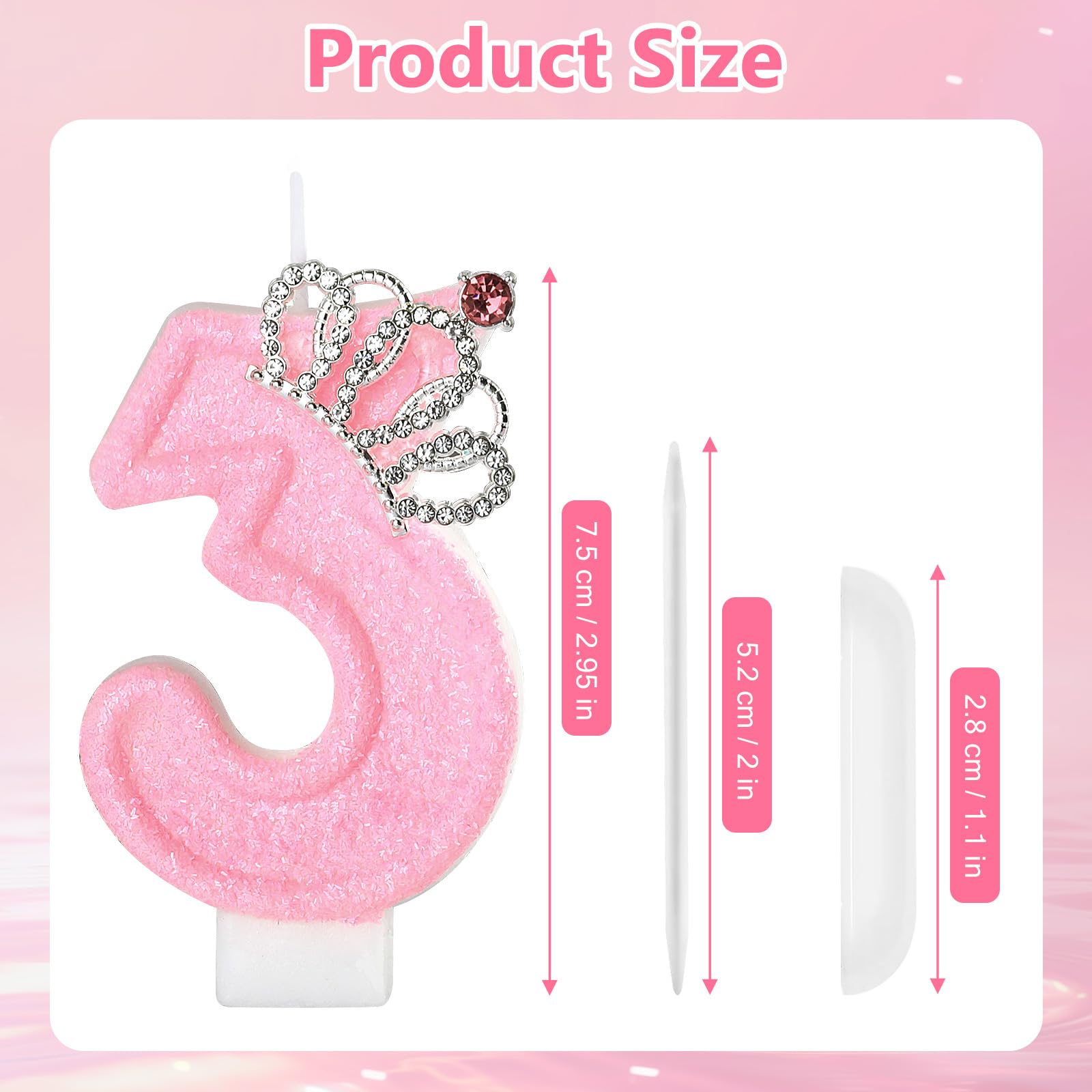 Beautiful: This pink birthday candle has a beautiful crown inlaid on the surface and is beautifully designed to add a bright splash of color to your cake!