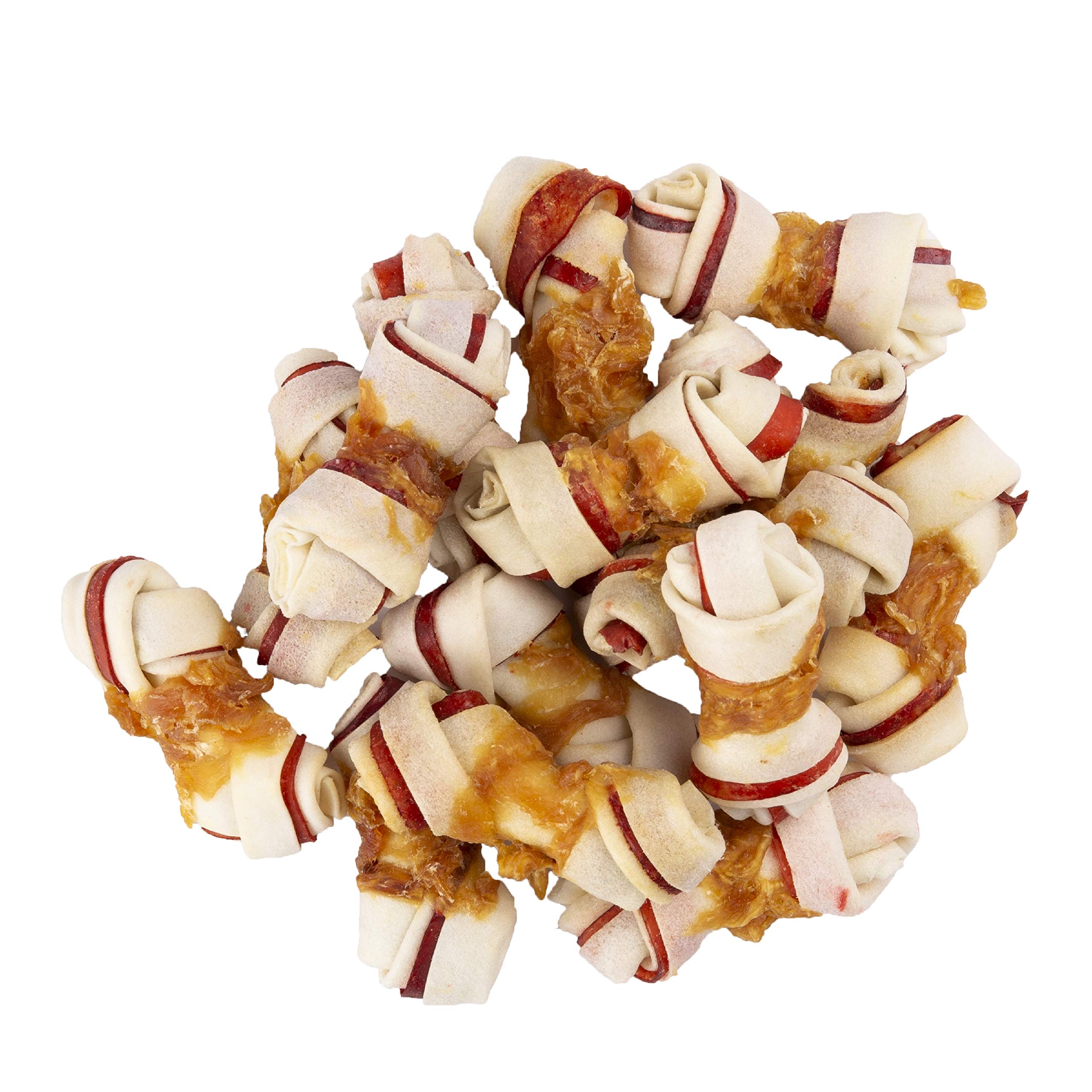 Eighteen triple-flavor premium 2-inch rawhide mini bones
