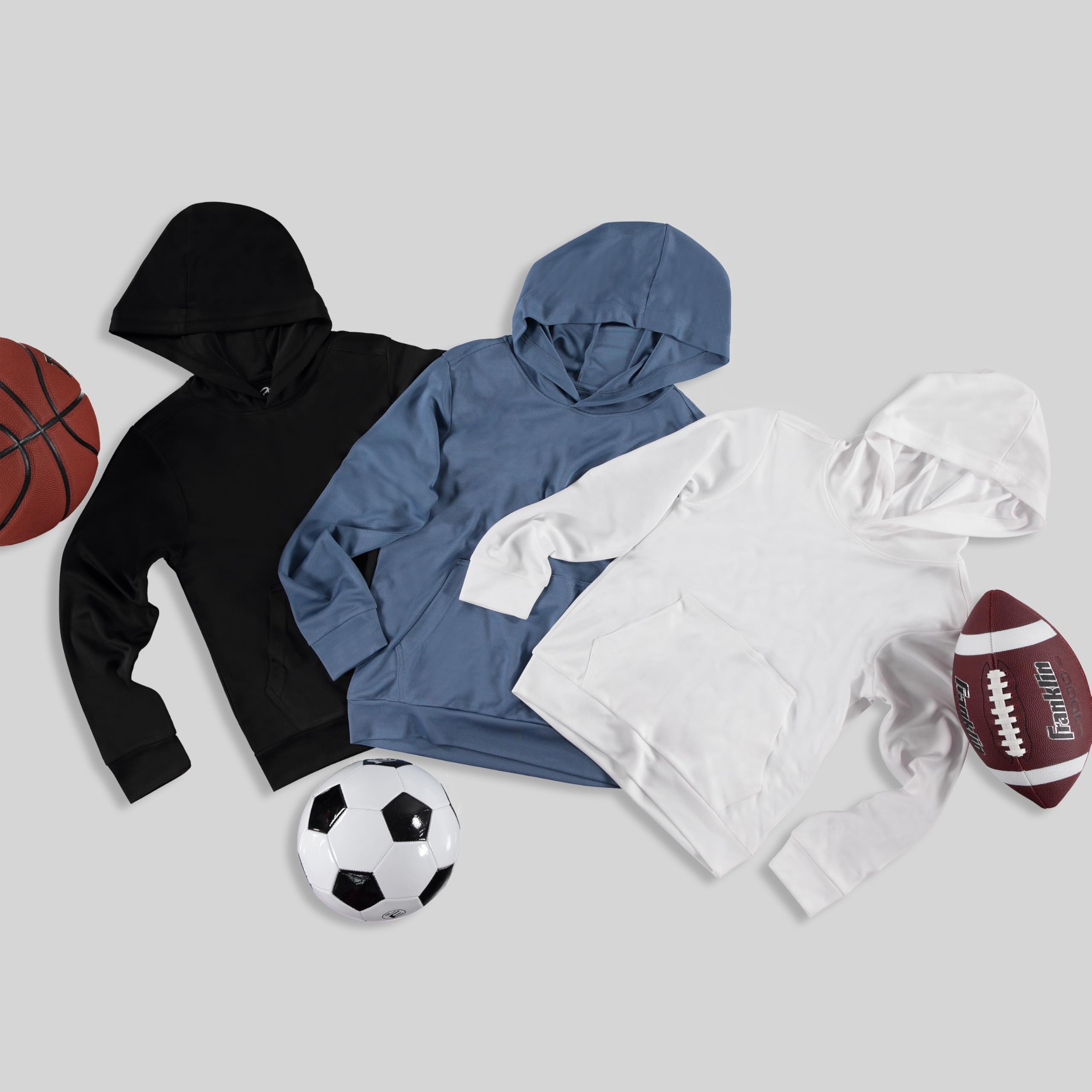 Description The Pure Champ 3-Pack Hoodies for Boys will keep your young one comfy, fashionable, and ready for a busy, active schedule. Designed for daily experiences, these essential hoodies are ideal for school, sports, gym class, or just chilling out at home. Each boys hoodie is made of 100% polyester and breathable lightweight mesh, making it ideal for active children. The quick-dry, moisture-wicking fabric provides all-day freshness, while the sturdy, anti-pilling material withstands multiple washes without fading. This collection features three flexible boysβ fashion hoodies in vivid, easy-to-match colors: blue, green, and black, so outfit planning is a breeze. These comfy hoodies are thoughtfully designed with a snug hooded collar, kangaroo pockets, and cuffed sleeves to provide warmth and flexibility. The Pure Champ 3-Pack, available in sizes 4 to 20 (XS to 2XL), is an ideal present or perfect wardrobe update for growing boys. Everyday Essentials for Active Boys. These lightweight hoodies are designed for mobility, comfort, and adaptability. Whether it's a hectic school day, a neighborhood basketball game, or a weekend trip, this 3-pack provides your kid with dependable, go-to solutions that work for all seasons and activities. The pullover style simplifies dressing, and the hood provides a practical layer of warmth when required. Soft and Breathable Fabric That Performs Each hoodie is made of 100% polyester mesh, which is comfortable on the skin and allows airflow during high-energy play. The fabric dries rapidly and draws moisture away from the body, allowing children to remain comfortable after recess or a game of tag at the park. It's the ideal combination of toughness and wearability for everyday usage. Colors That Match With Style And Simplicity The three-pack contains hoodies in black, blue, and green, all of which look great with jeans, joggers, or boys athletic shorts . These neutral tones are versatile, making morning wardrobe choice easy for both parents and children. They retain their color nicely after multiple washes, so they'll look great wear after wear. Practical Design for Superior Comfort The kangaroo pocket allows toddlers to warm their hands or store anything from keys, phone, or cash. The ribbed sleeve cuffs and hooded neckline provide wind protection without becoming bulky. These hoodies are lightweight and flexible, allowing children to move freely whether they are climbing the jungle gym or sitting in class. Product Features at A Glance: Set contains three hoodies. The sizes vary from XS (4/5) to 2XL (18/20). Made from 100% polyester. Lightweight and breathable mesh Quick-drying, moisture-wicking fabric. Kangaroo pocket provides convenience. Machine washable, fade-resistant.