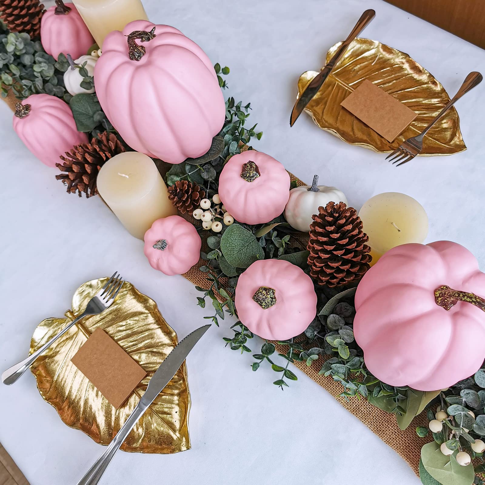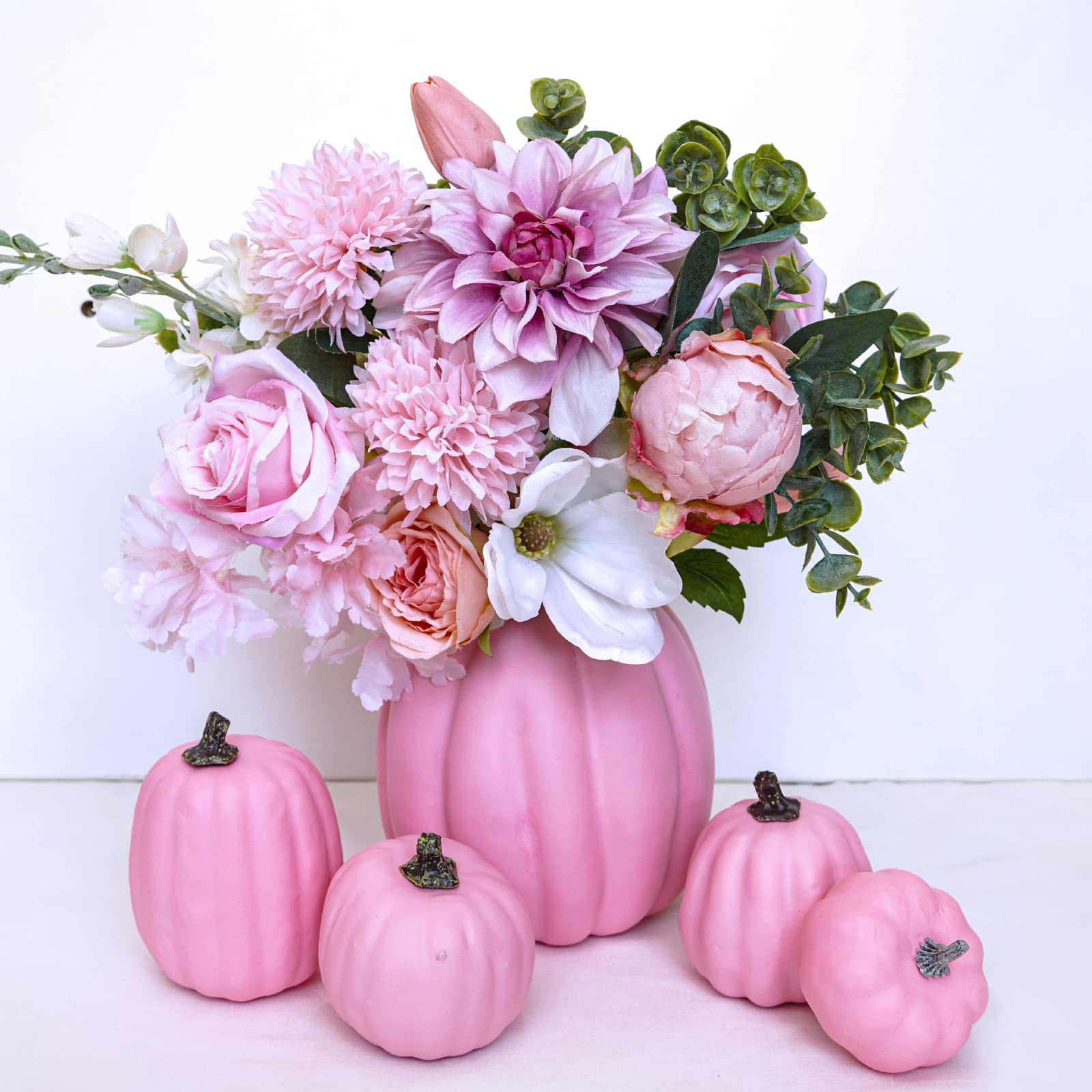 Material: Each artificial pumpkin is made of dense foam with a glossy coat of pink paint, topped with painted resin stems. They have a smooth but tough exterior and are lightweight, perfect for multiple uses. Faux pumpkins are durable and can be used all year long.