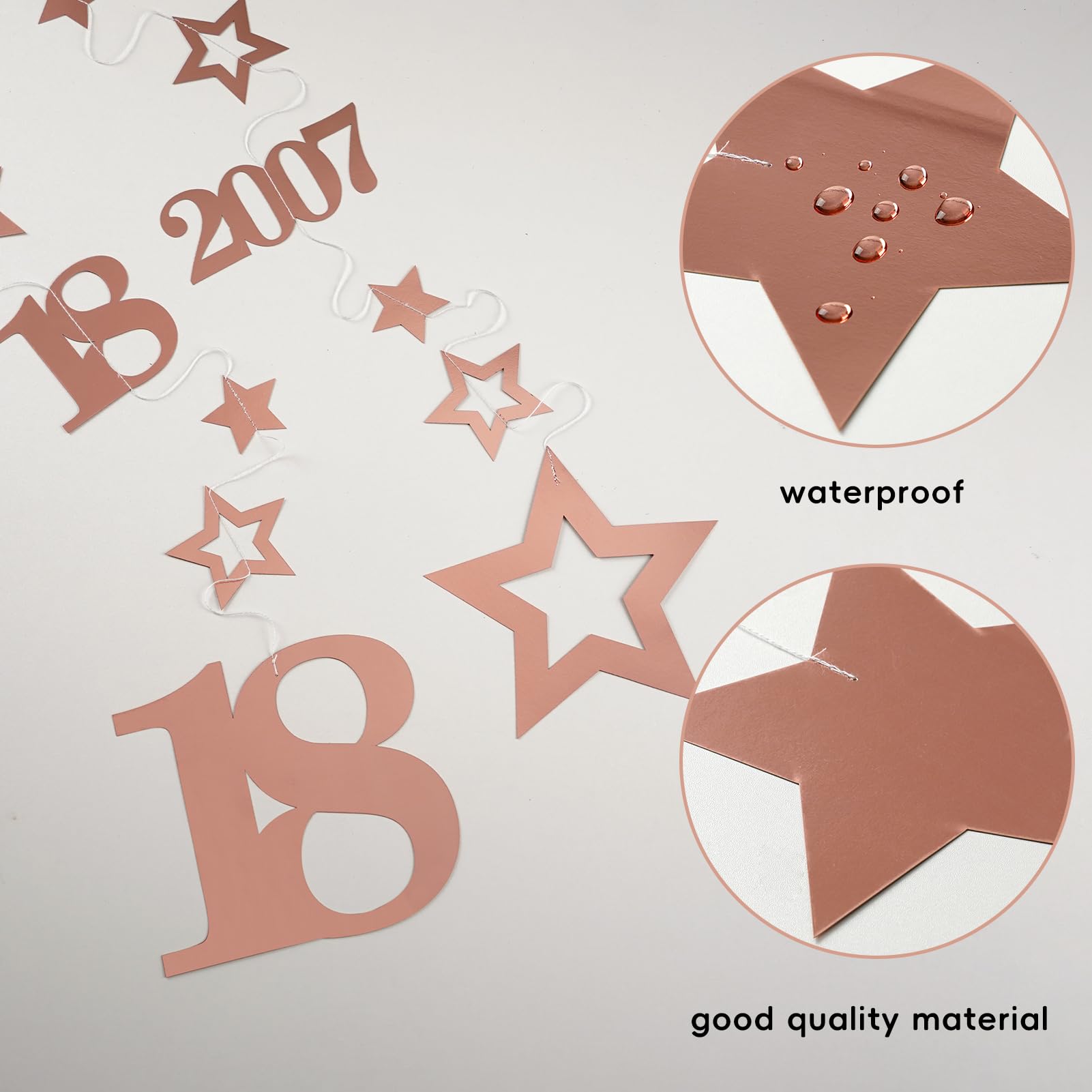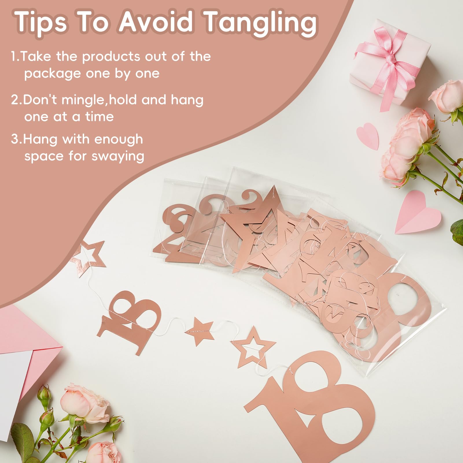 [You Will Get] -8pcs Pre-stung rose gold 18th metal birthday decorations for girls, each individually packaged, single back length is 39.3 inches, creating a sweet 18th birthday party for your girls.
