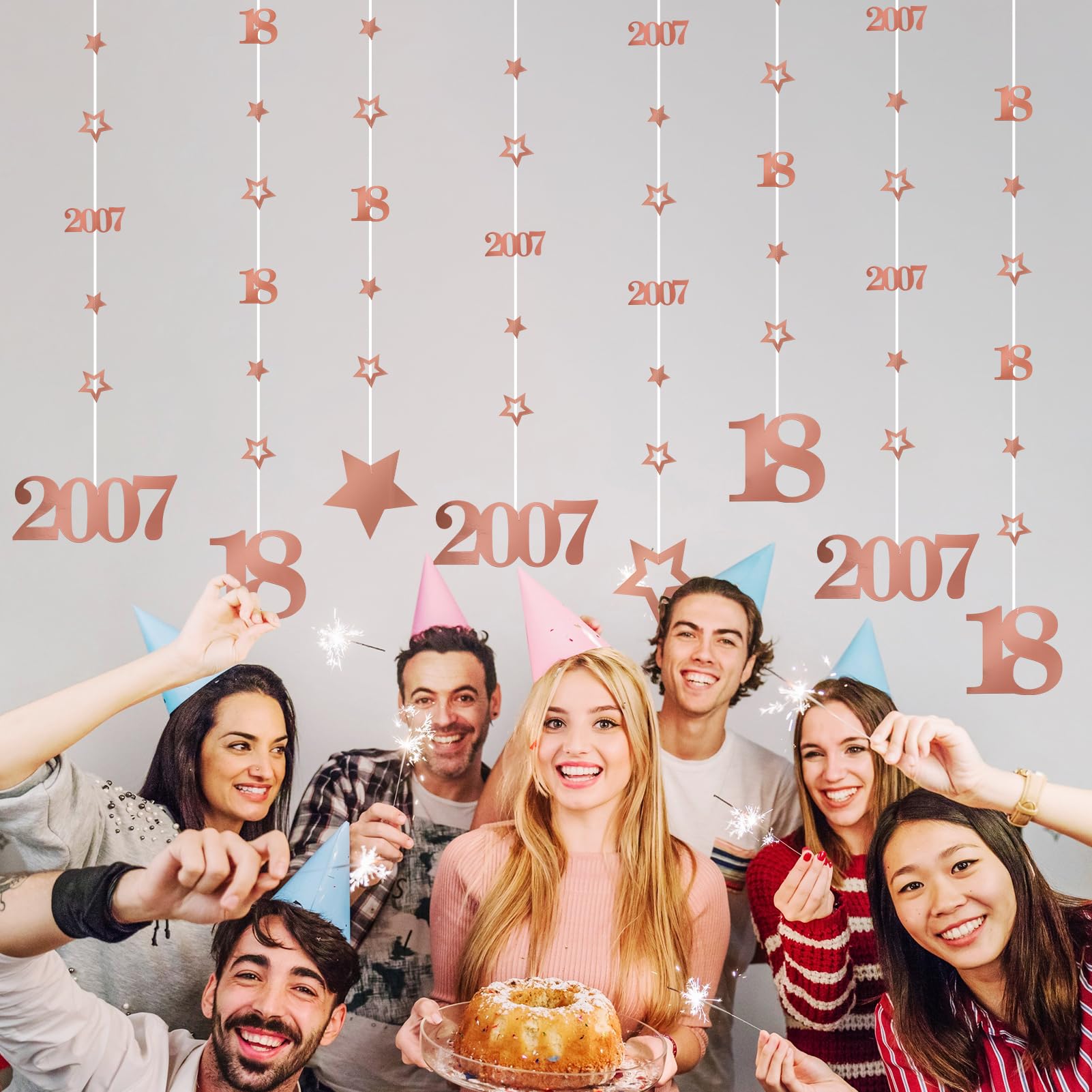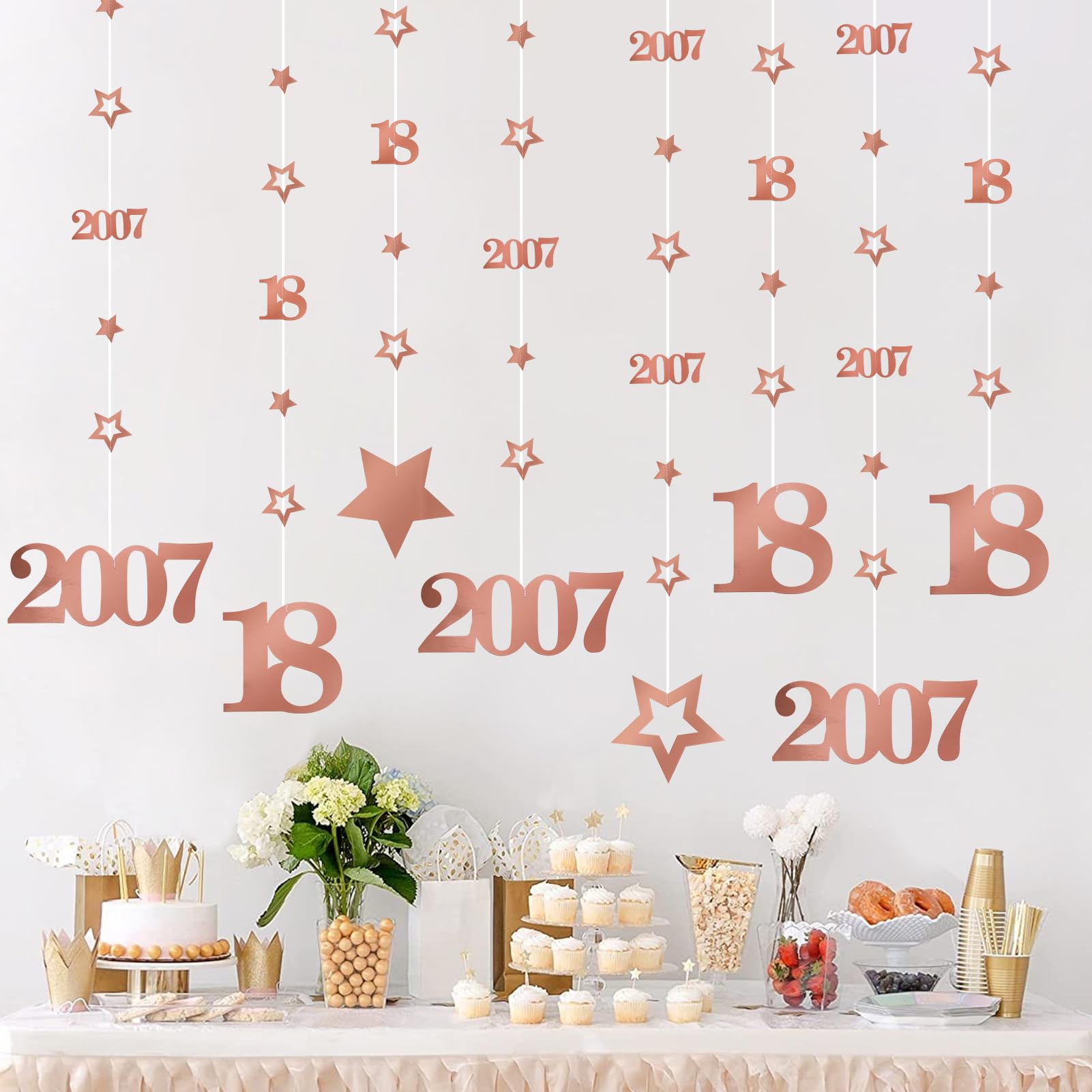 [Back in 2007 Design] - The rose gold glitter numbers "2007" and "18" highlight the birthday theme, create a sweet and romantic atmosphere, and attract attention, becoming the fashion center for the eighteen birthday celebrations.