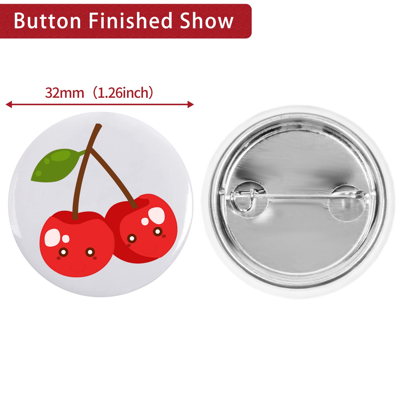 🍒Easy to Use - Start by choosing a picture you like and cut to the correct size. Then put the metal shell, pictures and plastic film in the pin maker machine in sequence and press down, and then press the button back cover. A pretty button badge is done.