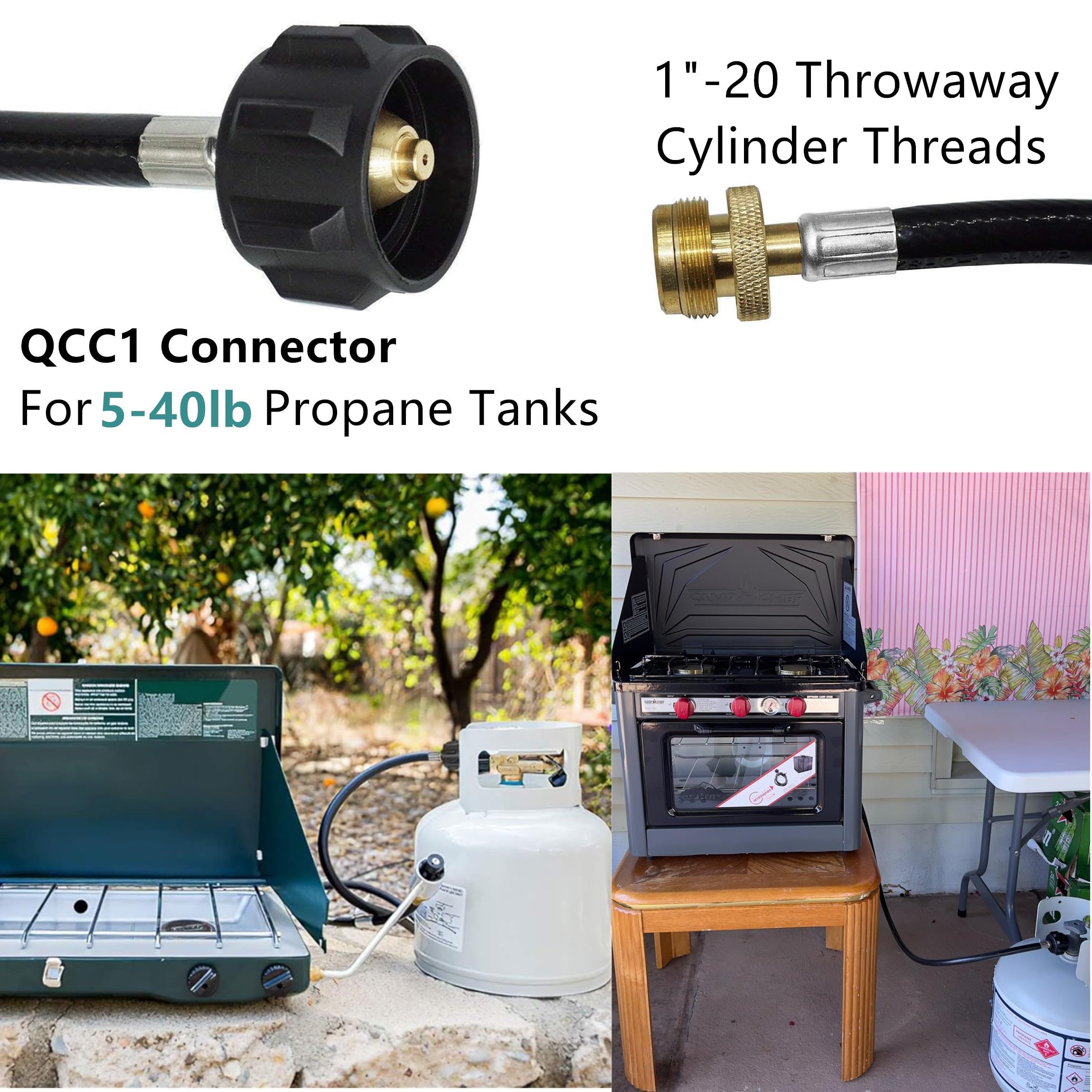Our DOZYANT propane Adapter allows you to connect a 20lb propane tank to your propane stove. With this sturdy adapter, you can easily attach your larger fuel tank to your stove, saving money & giving you the choice between 16.4 oz tank & a 20lb tank. Running out of fuel is no concern with this adapterβit's a quick & easy fix when you want to use a larger fuel Source! Simply screw your DOZYANT 20lb propane Adapter into your 16.4oz one & you're set to go.Dozyant propane hose adapter assembly with 100% solid brass fittings & rubber hose offer superior durability. Specifications> - Length: 4'/ 48"/122 cm - Gas type: lpg - Inlet Connector: QCC1/ type1 - apply to: LP gas grills, Heaters, cookers, camp stoves, fire pit tables, lanterns, tabletop grills & More propane appliances> - certificate: