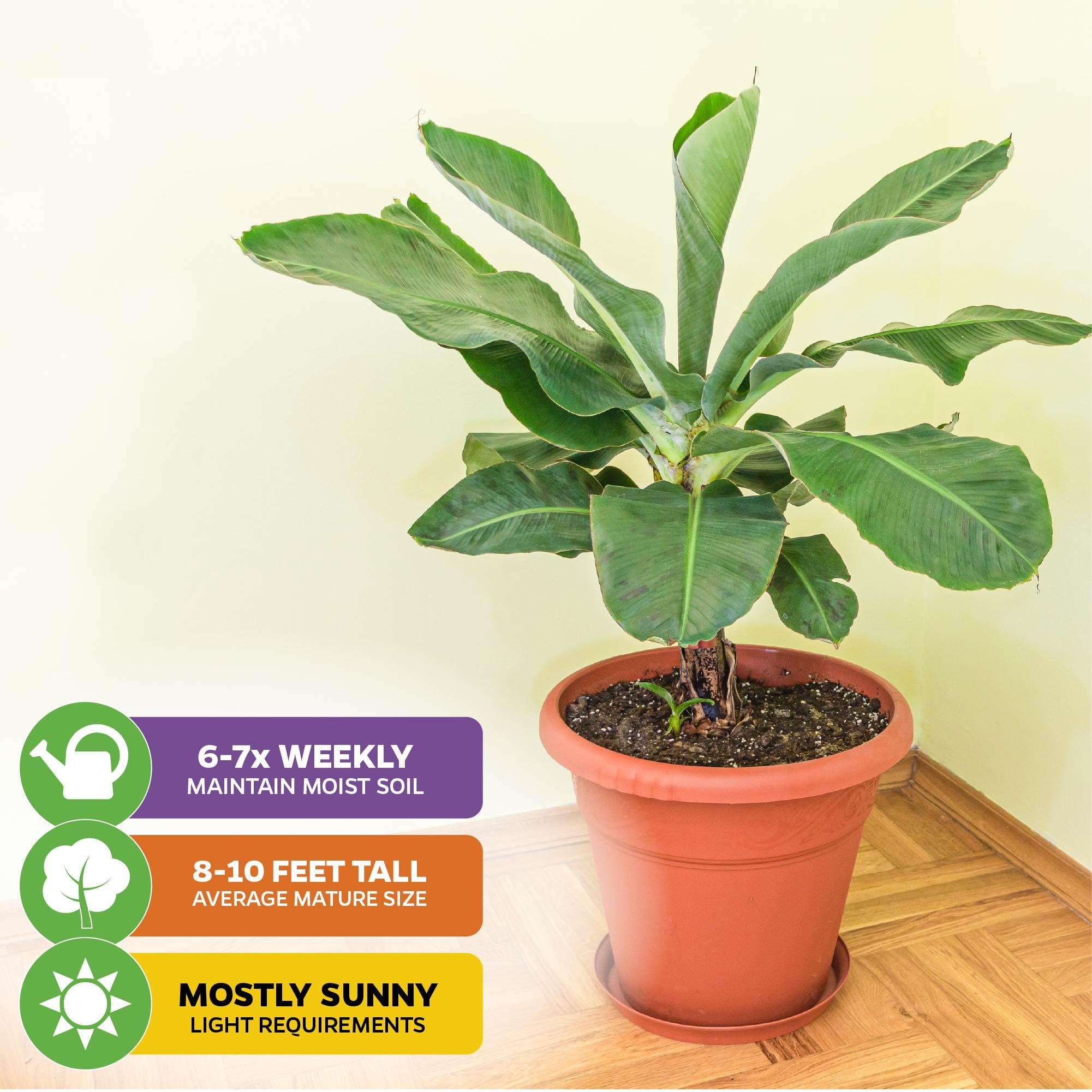 SIZE UPON ARRIVAL: Upon delivery, you'll welcome a youthful treasure – the Dwarf Cavendish Banana. Standing at 3-8 inches in height, nestled within a 3-inch-deep pot, this baby plant holds the promise of tropical splendor. As its guardian, your nurturing touch will guide it towards maturity, allowing it to flourish and thrive under your caring stewardship.