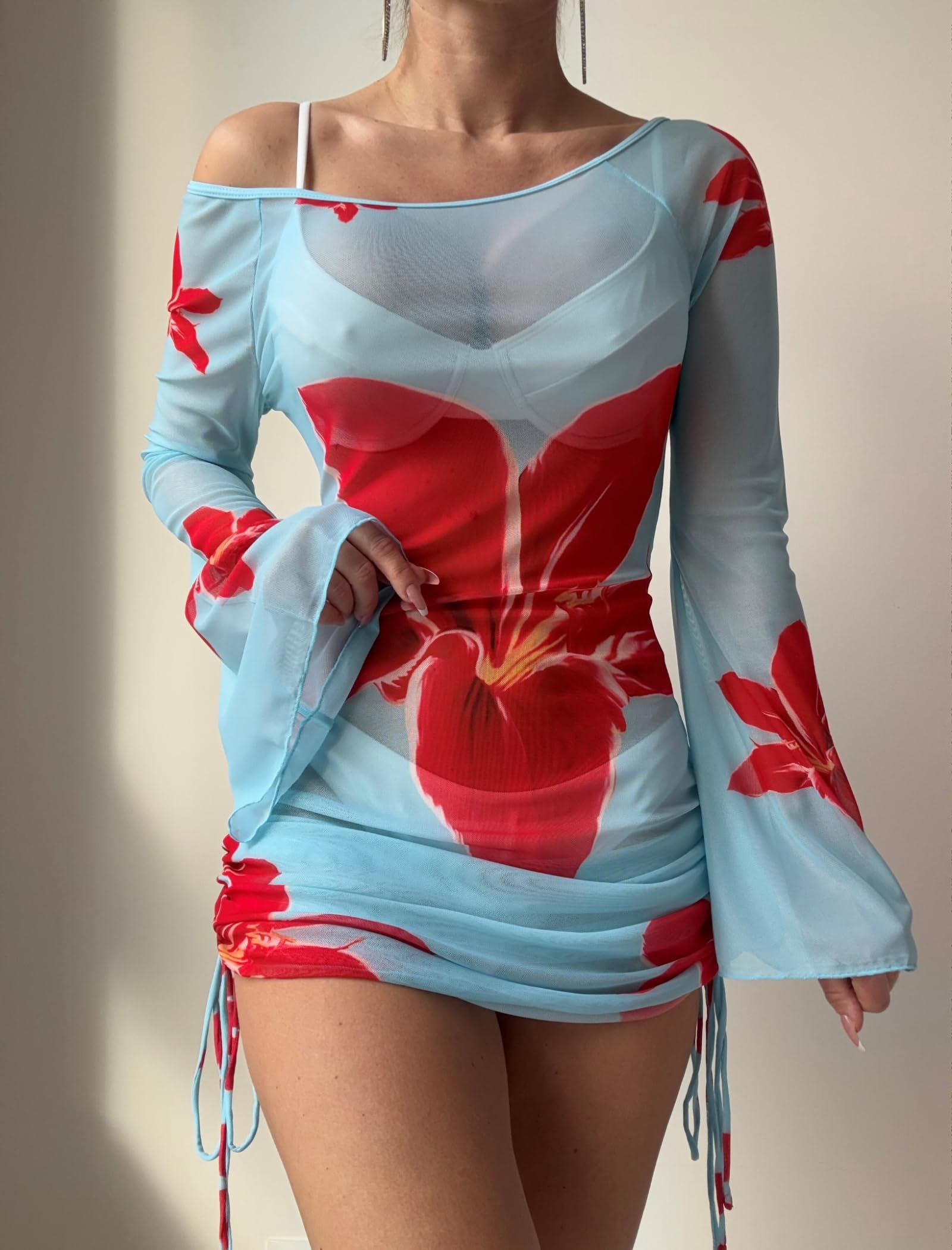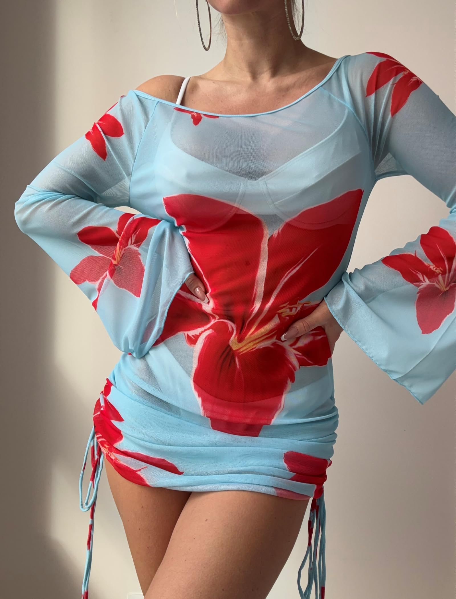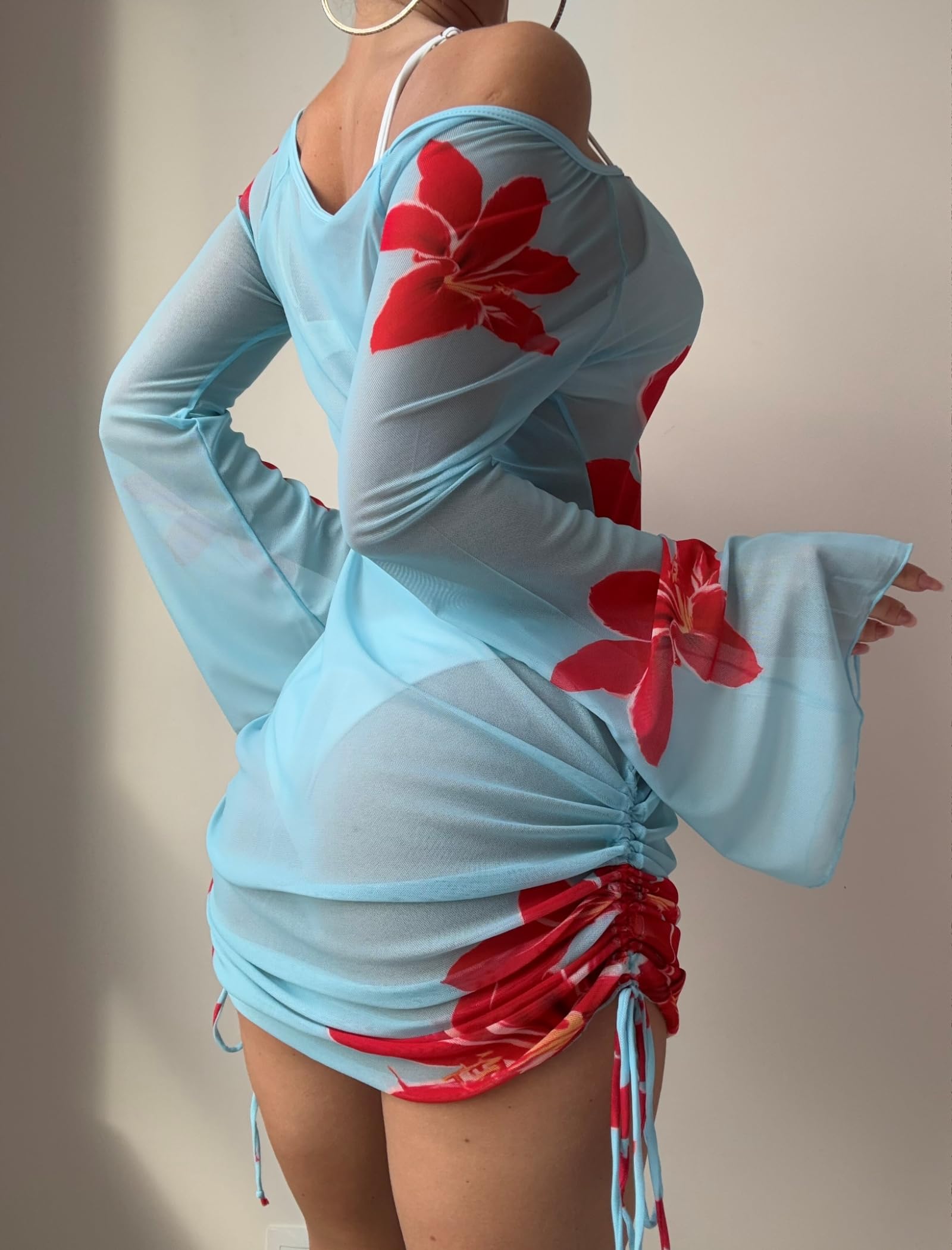 Swimsuit Cover Up: Off Shoulder,Hollow,Out Drawstring,Mesh,Beach Dress,Cover Up Bathing Suit Without Bikini