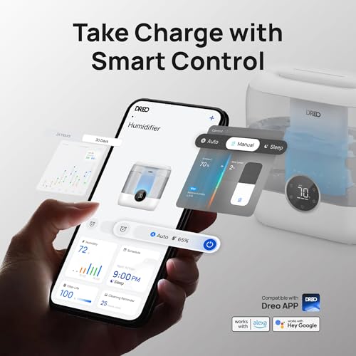 ððŠðĒðððððŪ ðūðĪðĢðĐð§ðĪðĄ, ðððð§ððŦðð§ ððĪðŠ ðžð§ð: Use the DREO app, voice commands, or Alexa to remotely manage your plant humidifier, Easily monitor indoor humidity and adjust settings to ensure a healthy environment for your family, especially suited for babies, plants, and pets.