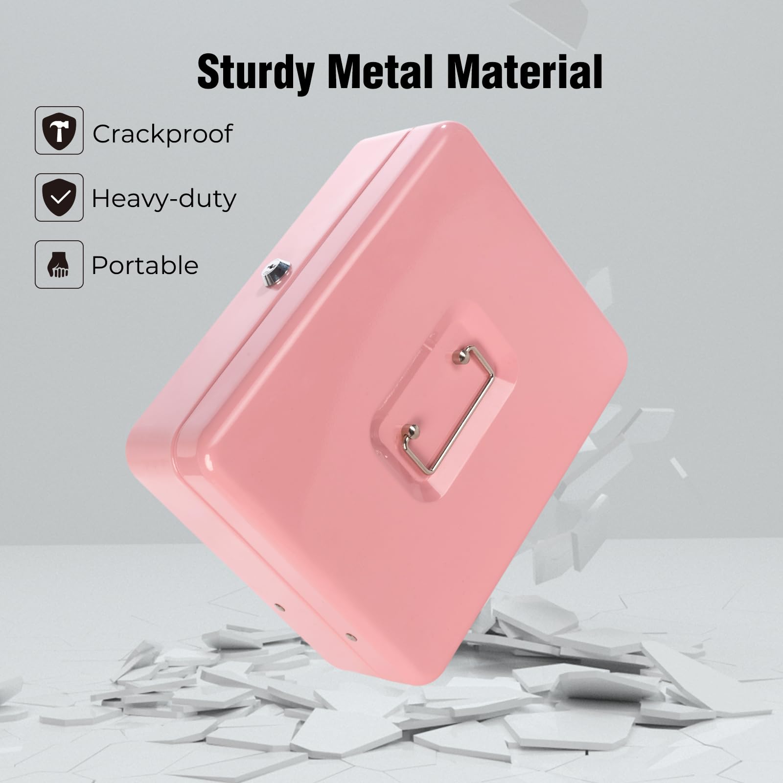 HEAVY DUTY MATERIAL: The cash box with lock is made of heavy-duty metal. The money lock box weighs 1.8kg, being strong and durable to prevent it from drops and impacts. Both the money box and the key lock are of durable material quality and can be used for a long time.