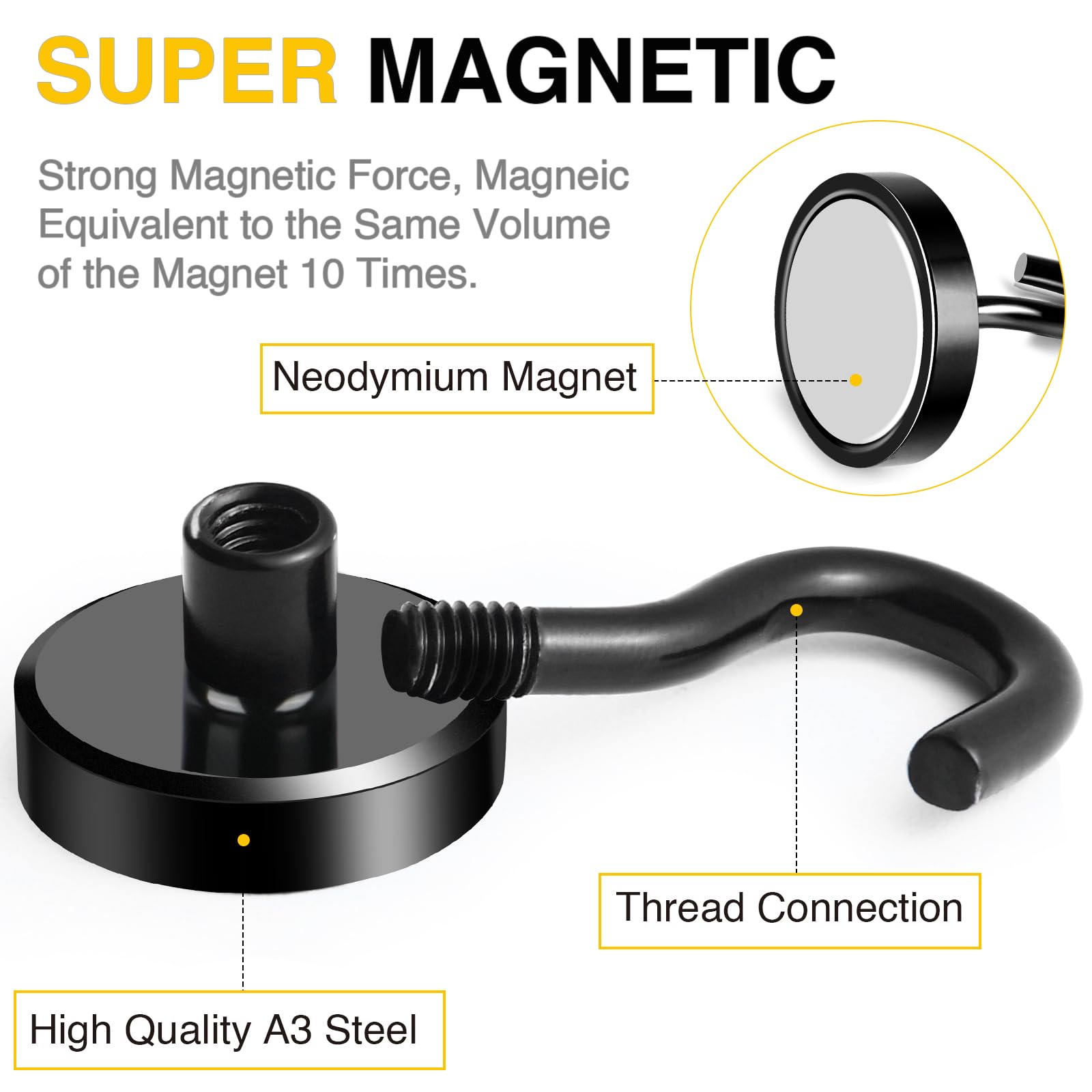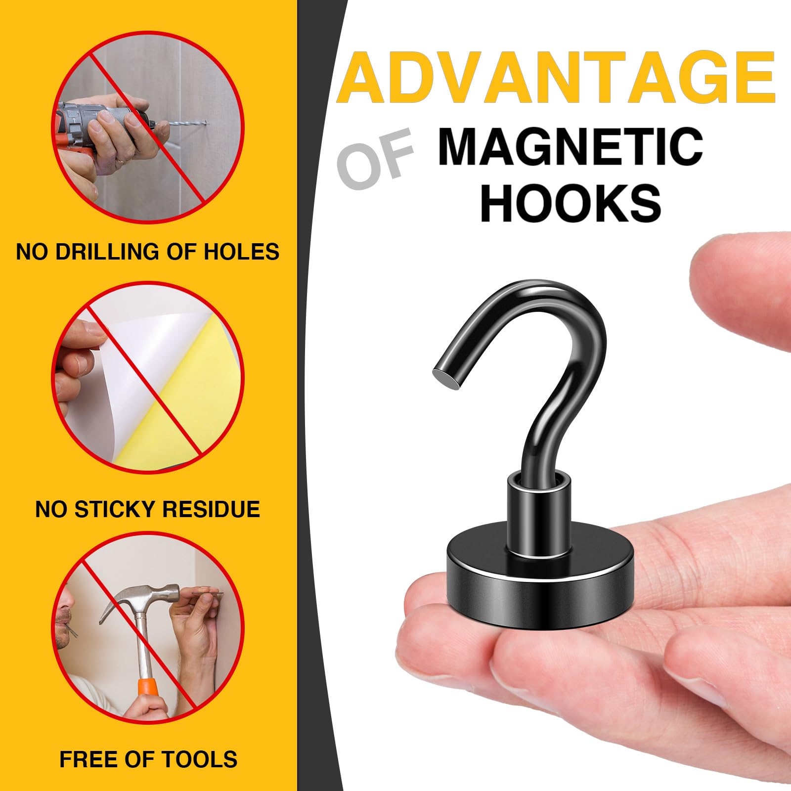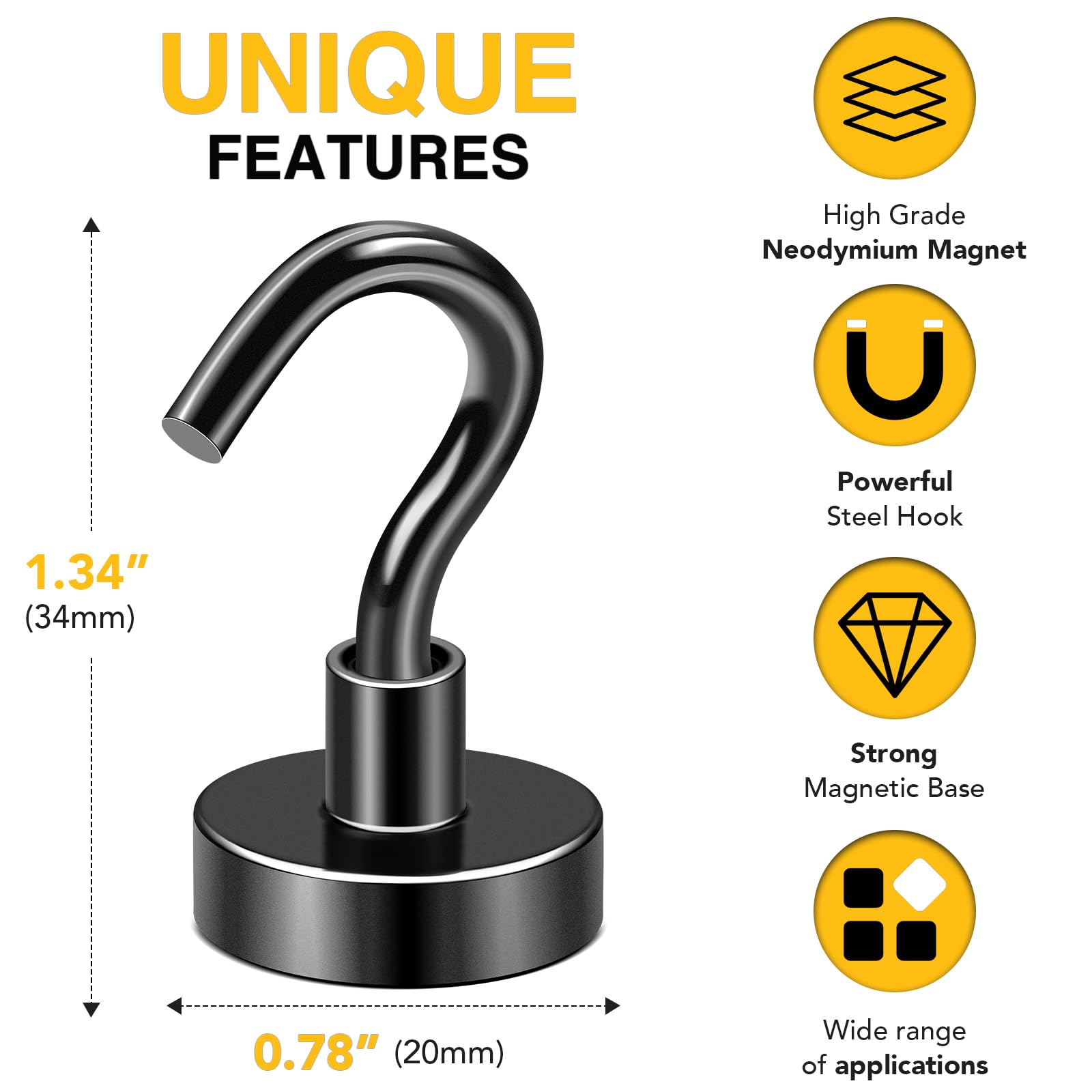 【Versatile Use】Black magnetic rare earth neodymium hooks are perfect for hanging grill tools, decorative lights and tool accessories, also be widely used in cruise, fridge, kitchen, locker, workplace office, garage, indoor, outdoor and anywhere there is iron or steel. No drilling holes, No sticky residue, No bolt or screws; Easy to install or remove and reusable.