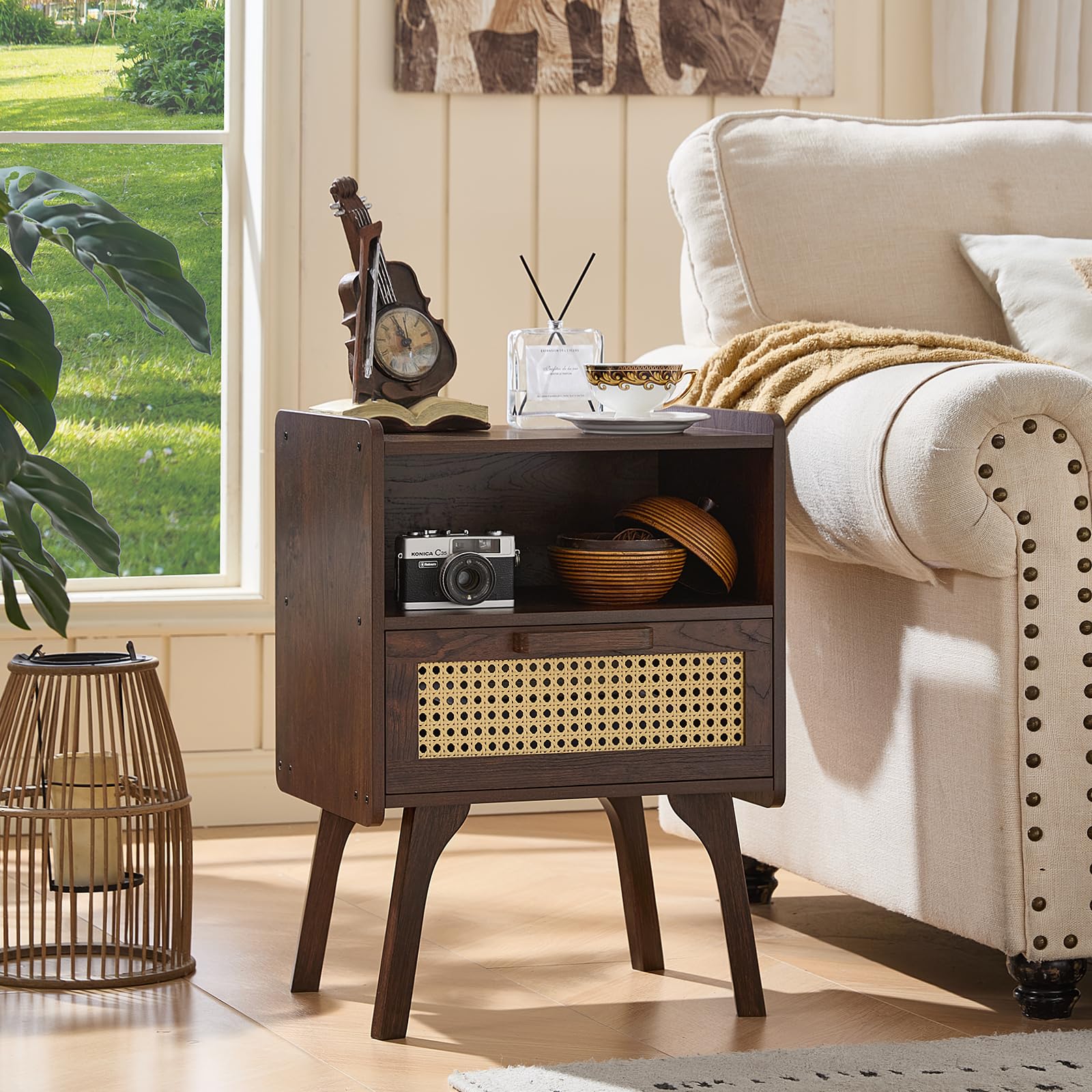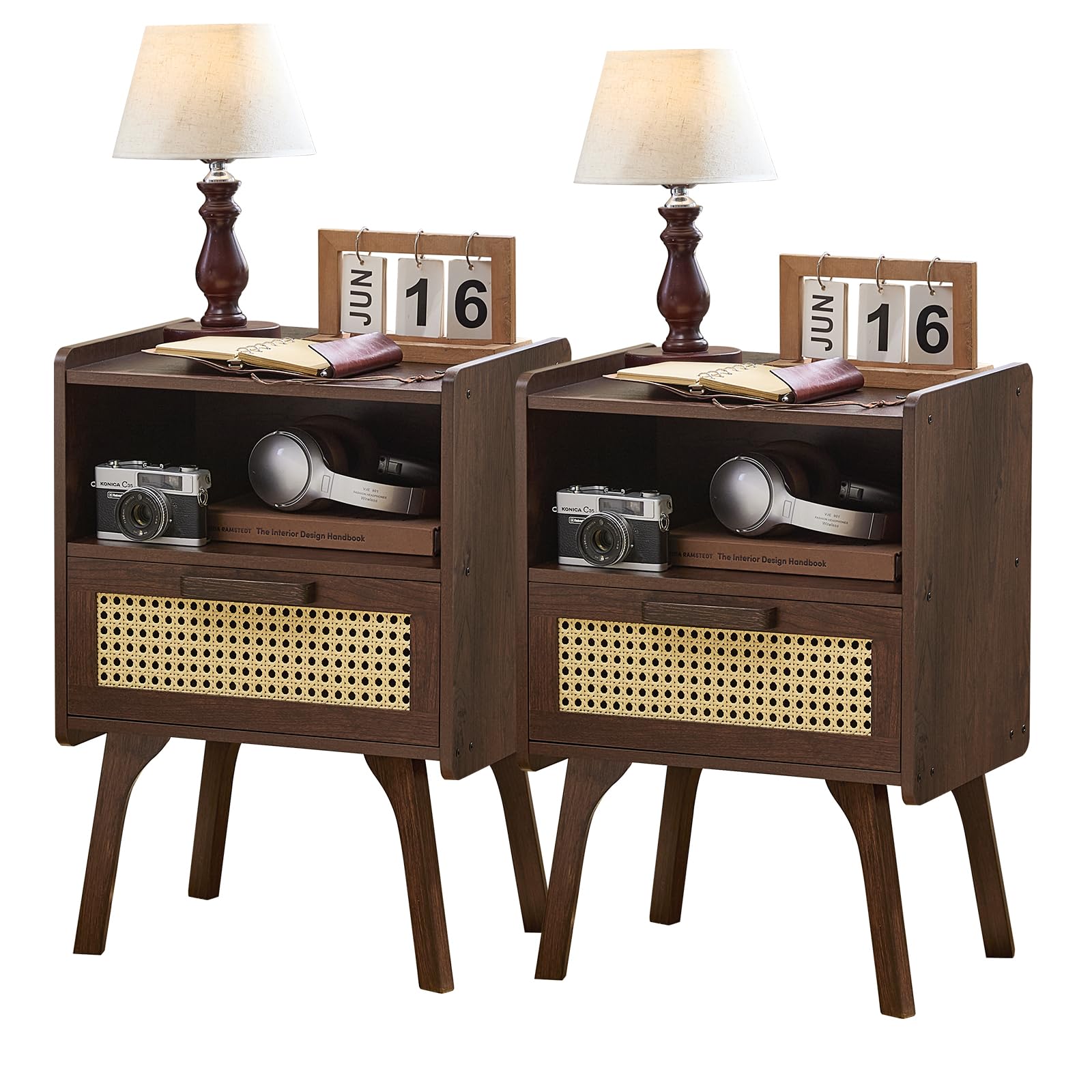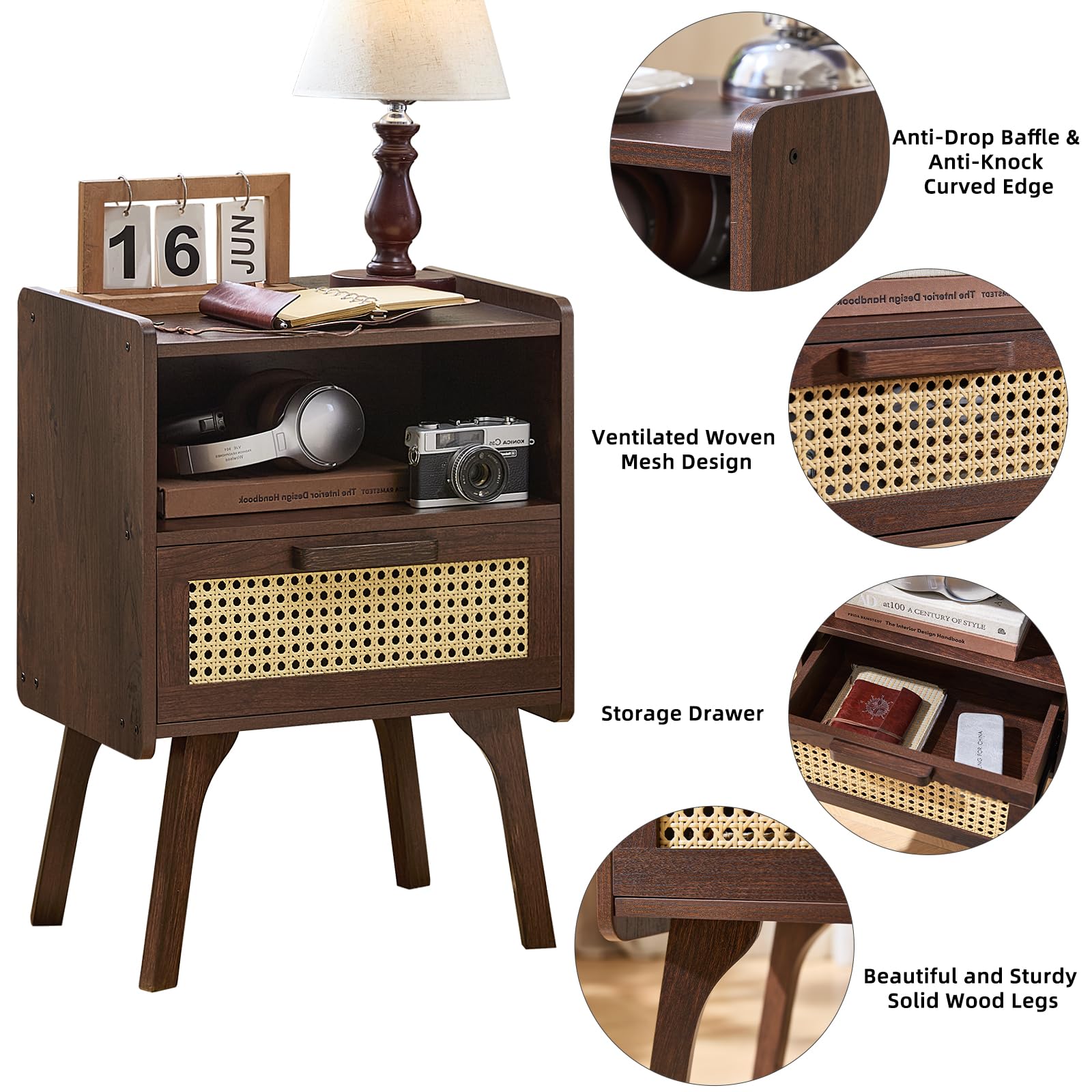 [Rattan Nightstand set of 2] The wood texture rattan night stand combines modern style and boho element. It is suitable for many styles of home decor and can help you transform your living space. The cane decorated drawer is beautiful and practical and the rattan mesh design keeps the air flowing in addition to the storage. Rattan furniture brings a perfect visual effect and adds charm to your home.