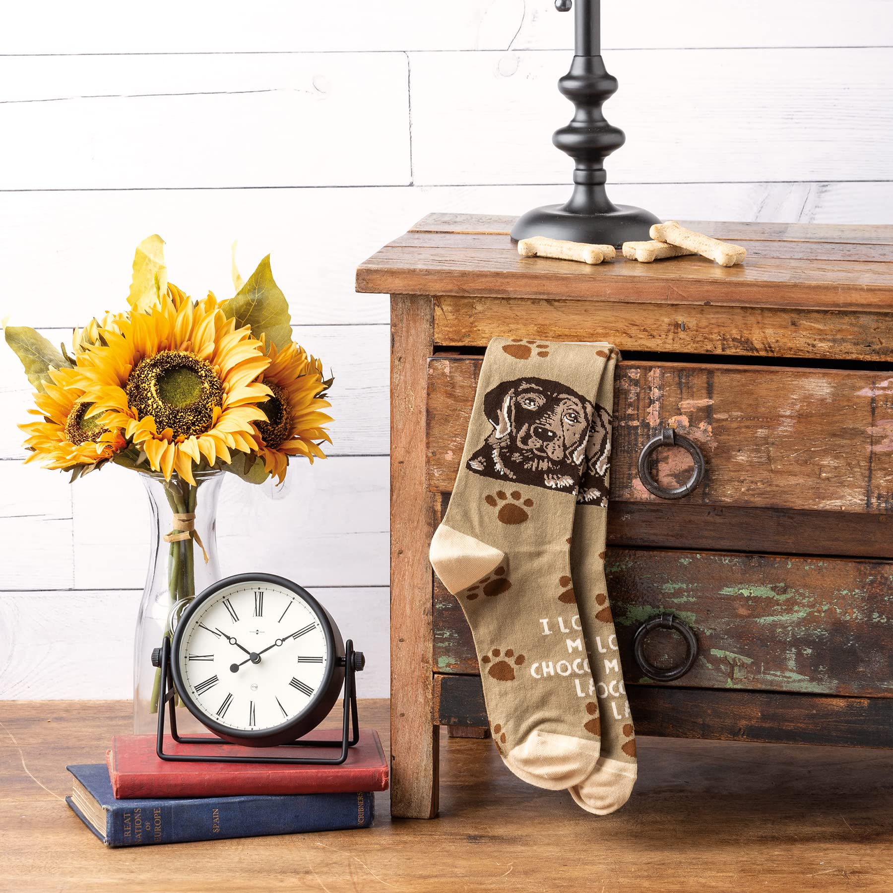 Description These colorful socks feature woven block print designs with coordinating "I Love My Chocolate Lab" sentiment. Cotton, nylon, spandex. One size fits most.
