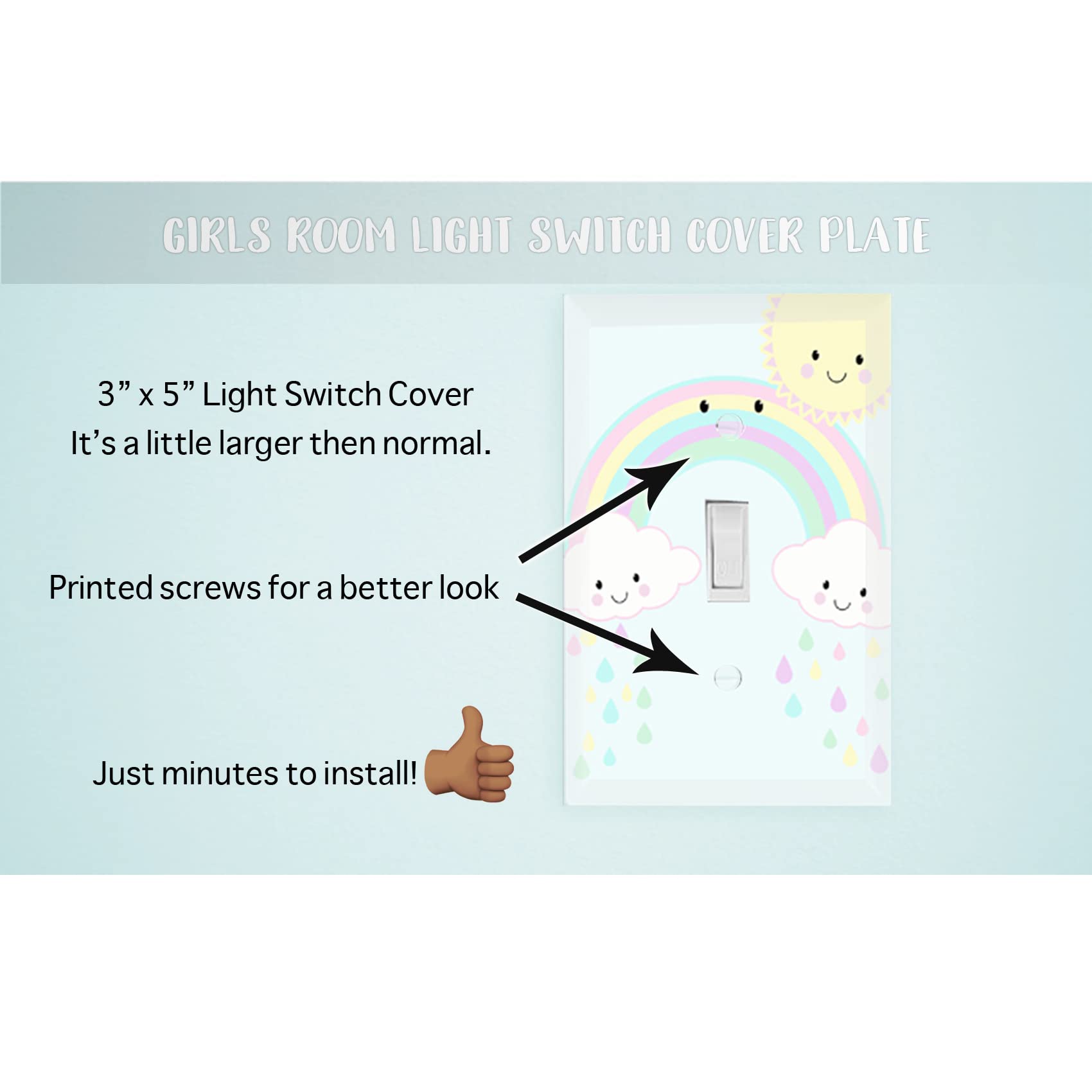 Fun decorative accent to any bedroom wall light switch for baby nursery room, toddler, tween and teens!