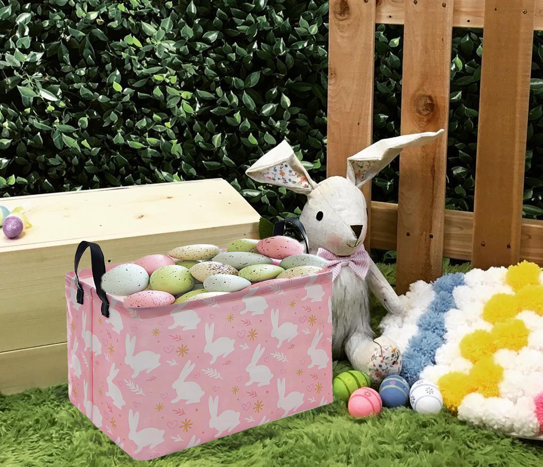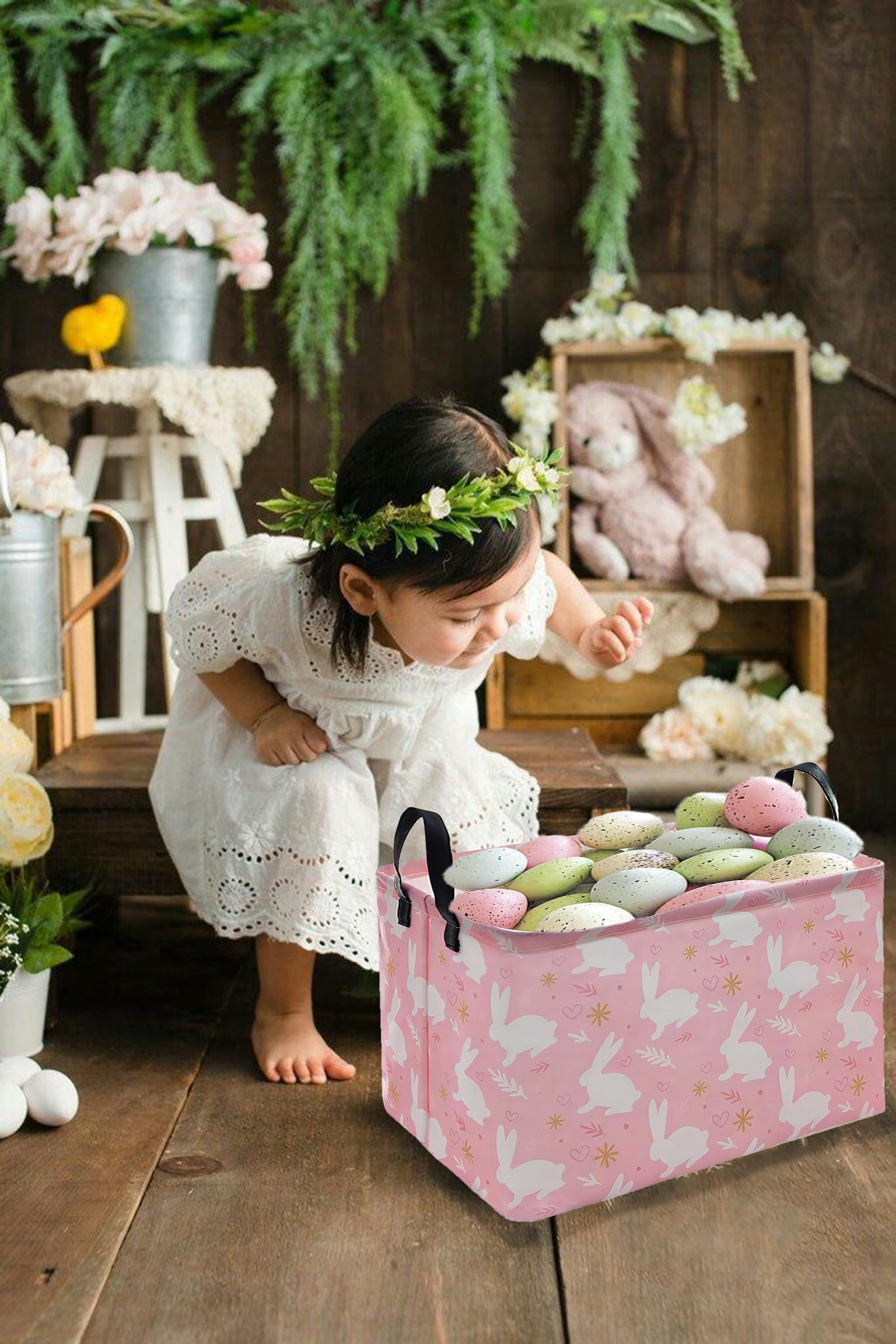 【Perfect Size】:The Easter egg basket is perfect size, measuring 14.5 (L)×10.2(W)×9.8(H)inches. Our Bunny Easter Basket provides ample space for a bounty of Easter eggs.