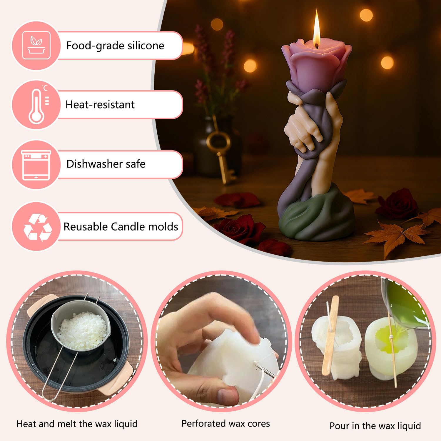 【Hand Holding Rose Candle Mold】:You will receive 1PcHand Holding Rose Candle Silicone Mold. Hand Holding Rose Silicone Candle Mold can meet your DIY crafting needs.The size of each mold is different,please refer to the picture for the specific size. These Hand Holding Rose Candle Molds are compatible with a wide range of hard candle waxes, such as paraffin wax, hard gel wax, beeswax, or soy wax/beeswax blends.Our product is not suitable under 12 years old