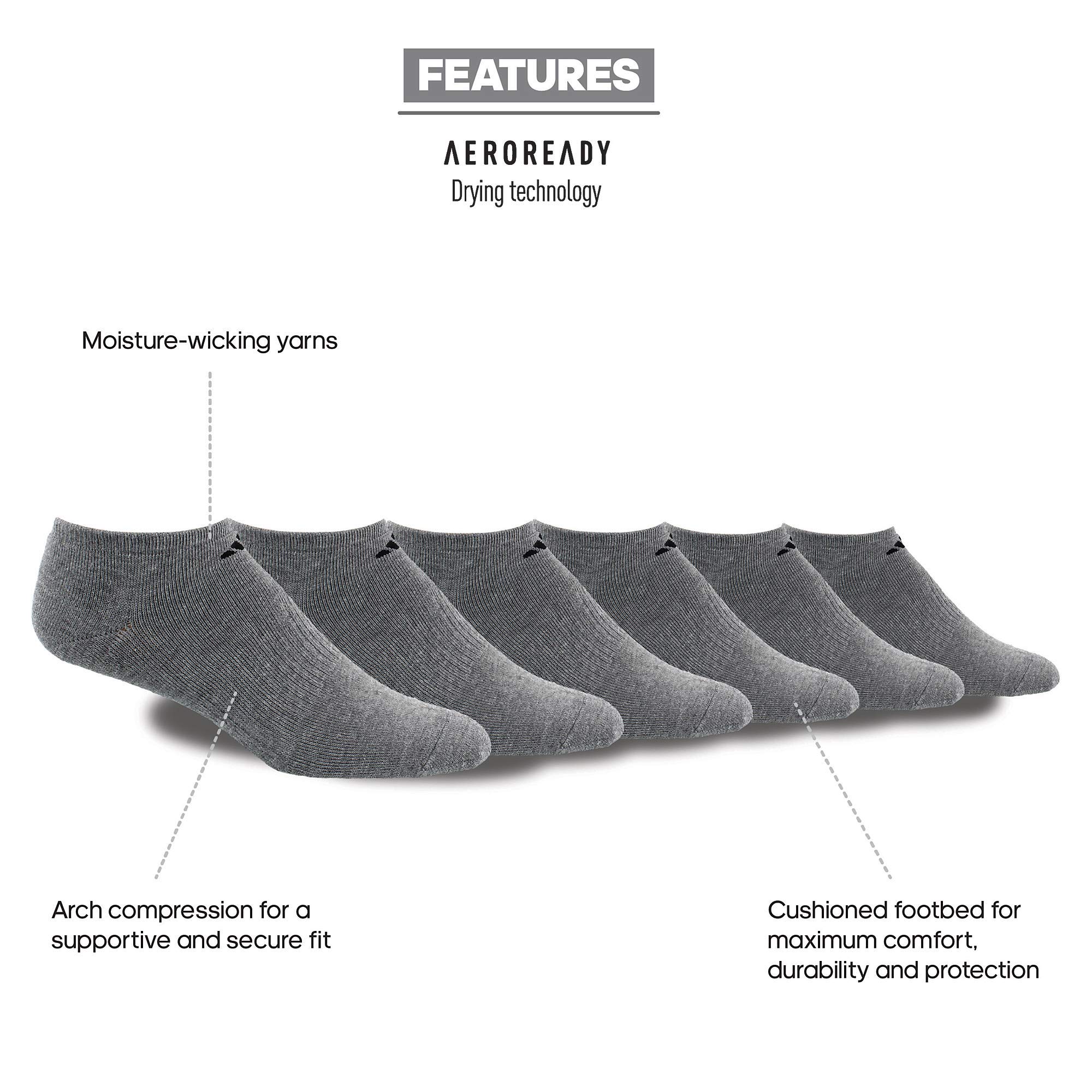 Description Enjoy comfort and performance with these adidas Men's Athletic Cushioned No Show Socks, available in a convenient 6-pair pack. Designed specifically for the active man, these mens athletic socks offer cushioning in the foot, providing both comfort and durability during your daily workouts or casual outings. The arch compression feature delivers a secure fit, helping you maintain the ideal stride. The moisture-wicking yarns effectively keep your feet dry from sweat, providing a fresh feel mile after mile. Tailored to fit men's feet, these socks are ideal for diverse activities. Whether you're hitting the track with mens running socks or enjoying a leisurely day at home, these men's socks offer versatile appeal. Furthermore, as mens adidas socks, they bring trusted brand quality into your apparel lineup, helping you stay comfortable and stylish with each step you take.
