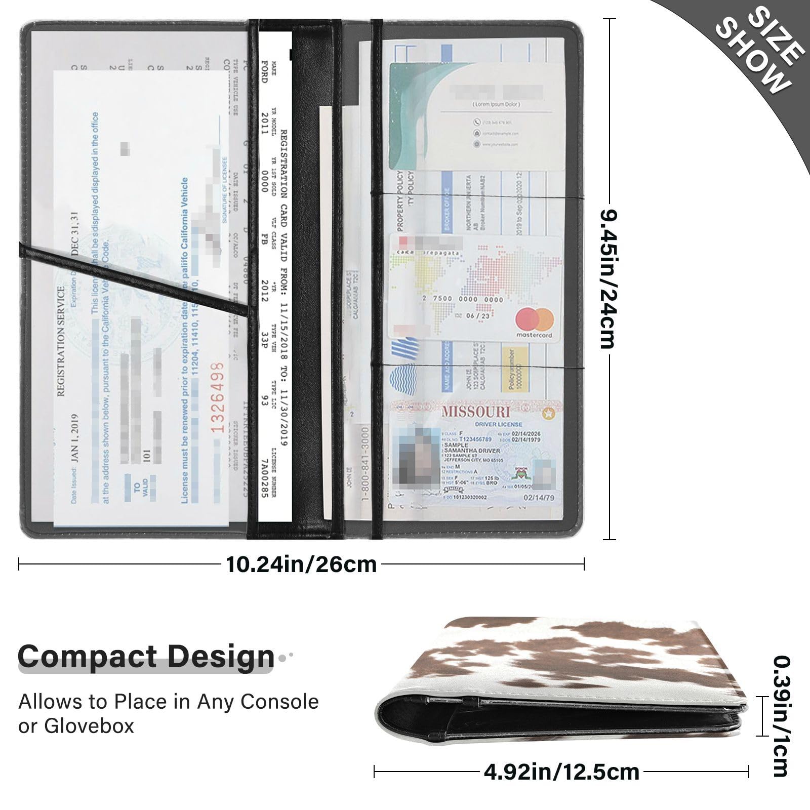 Standard Size & Slim Design : 9.5" x 5" x 0.3". Perfect Fit for Most Glovebox or Console Compartment. 1 Large Pocket for Car insurance. 2 Pockets to Vehicle Registrations Cards. 3 Small Slots Can Fit Other Items.