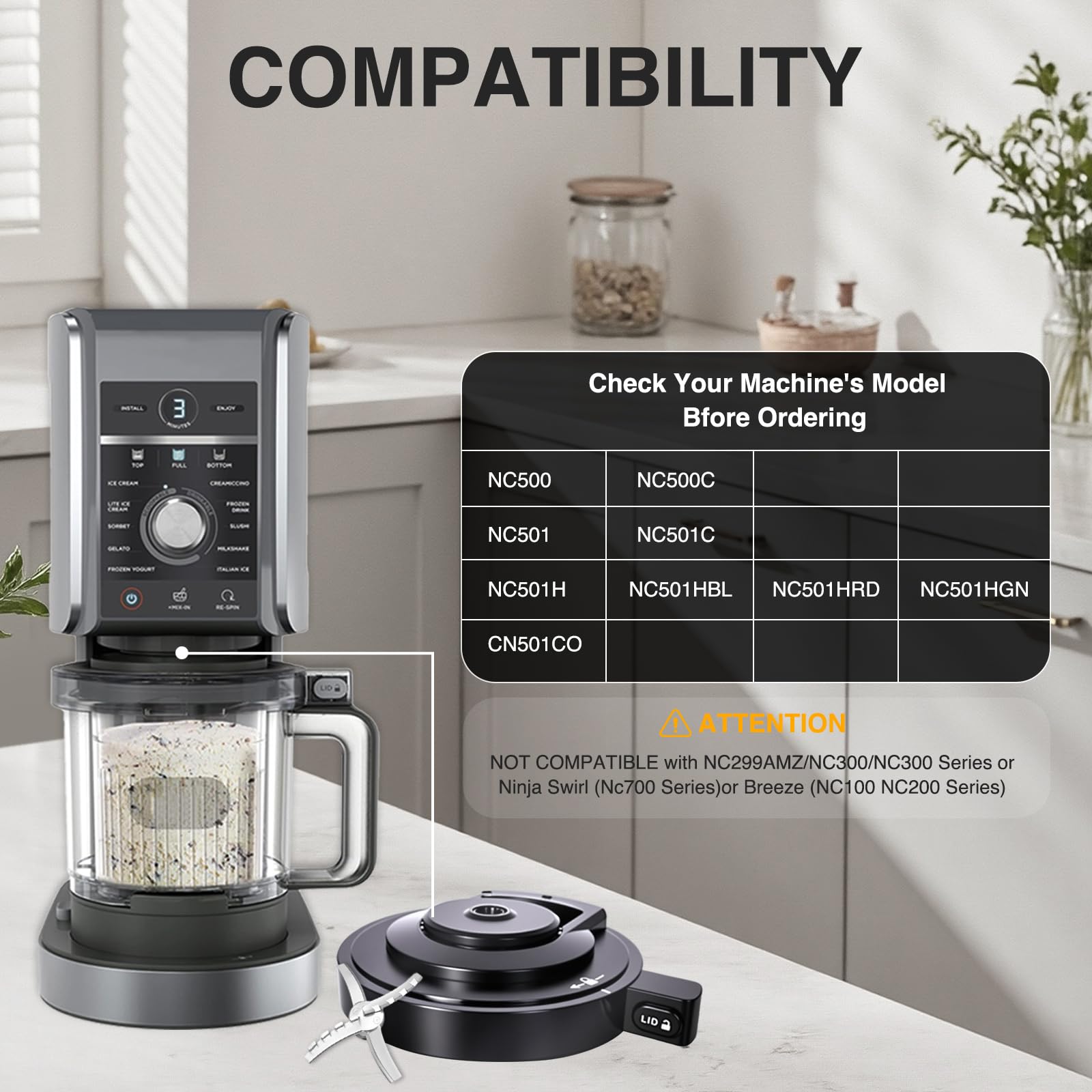 【SEAMLESS COMPATIBILITY】This replacement outer bowl cover is specifically designed for Ninja models COMPATIBLE with Ninja Deluxe NC500, NC501, NC501H, NC501HBL, NC501HGN and CN501CO . ❌ NOT (NC300 Series) lce Cream Makers or Ninja Swirl (NC700 Series) or Breeze (NC100NC200 Series)