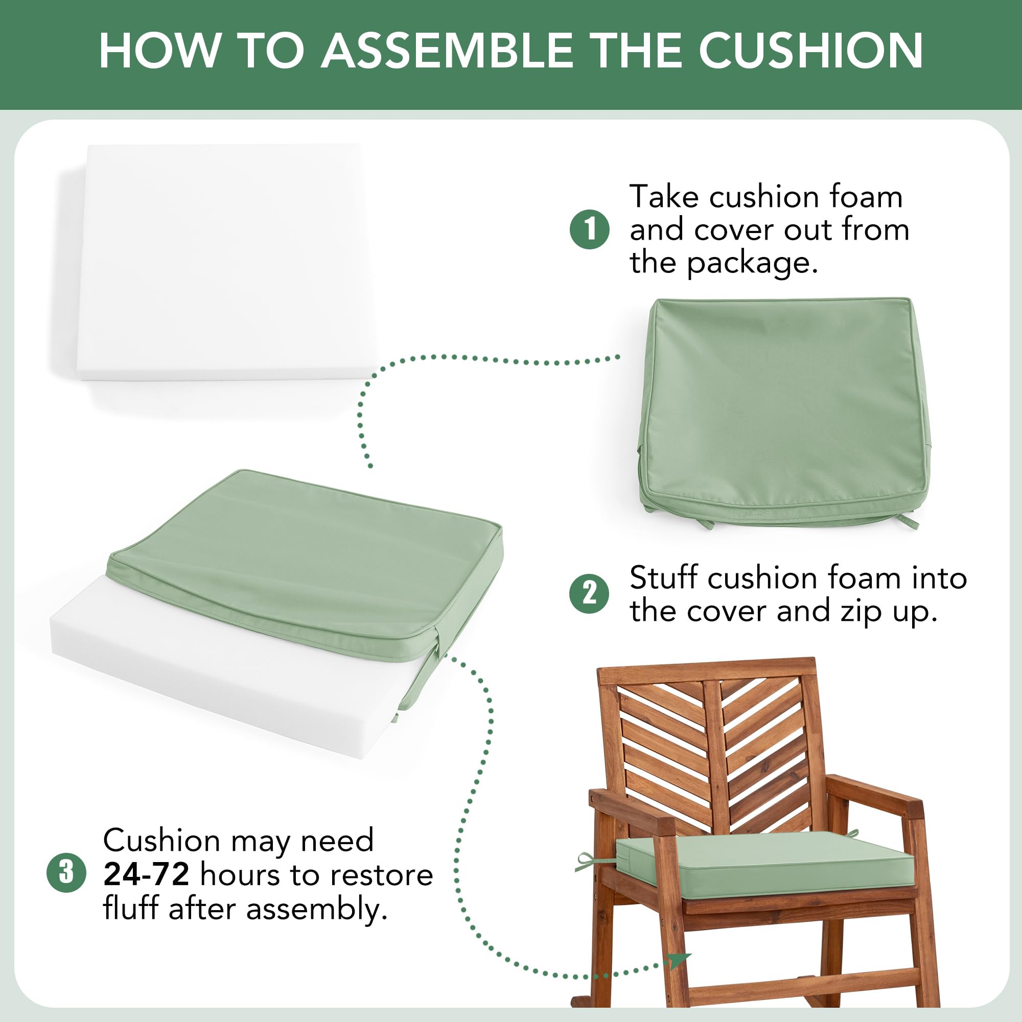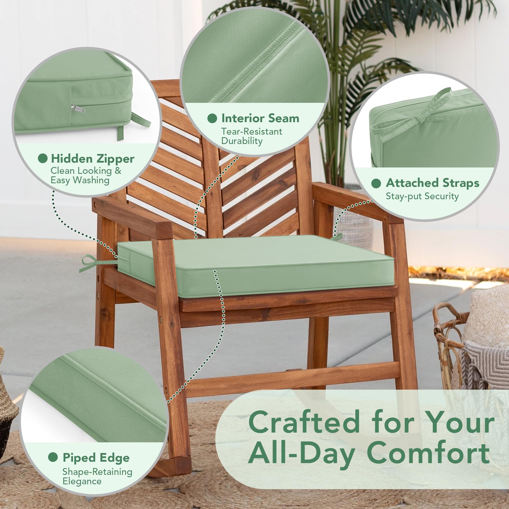 Stable and Removable: Summsun deep seat cushions non slip features two adjustable straps, they will keep your chair cushions exactly where you want them while also ensuring they look great on your furniture. The hidden zipper adds a sleek look while allowing for easy removal of the cushion covers. The covers are machine washable, making cleaning effortless.