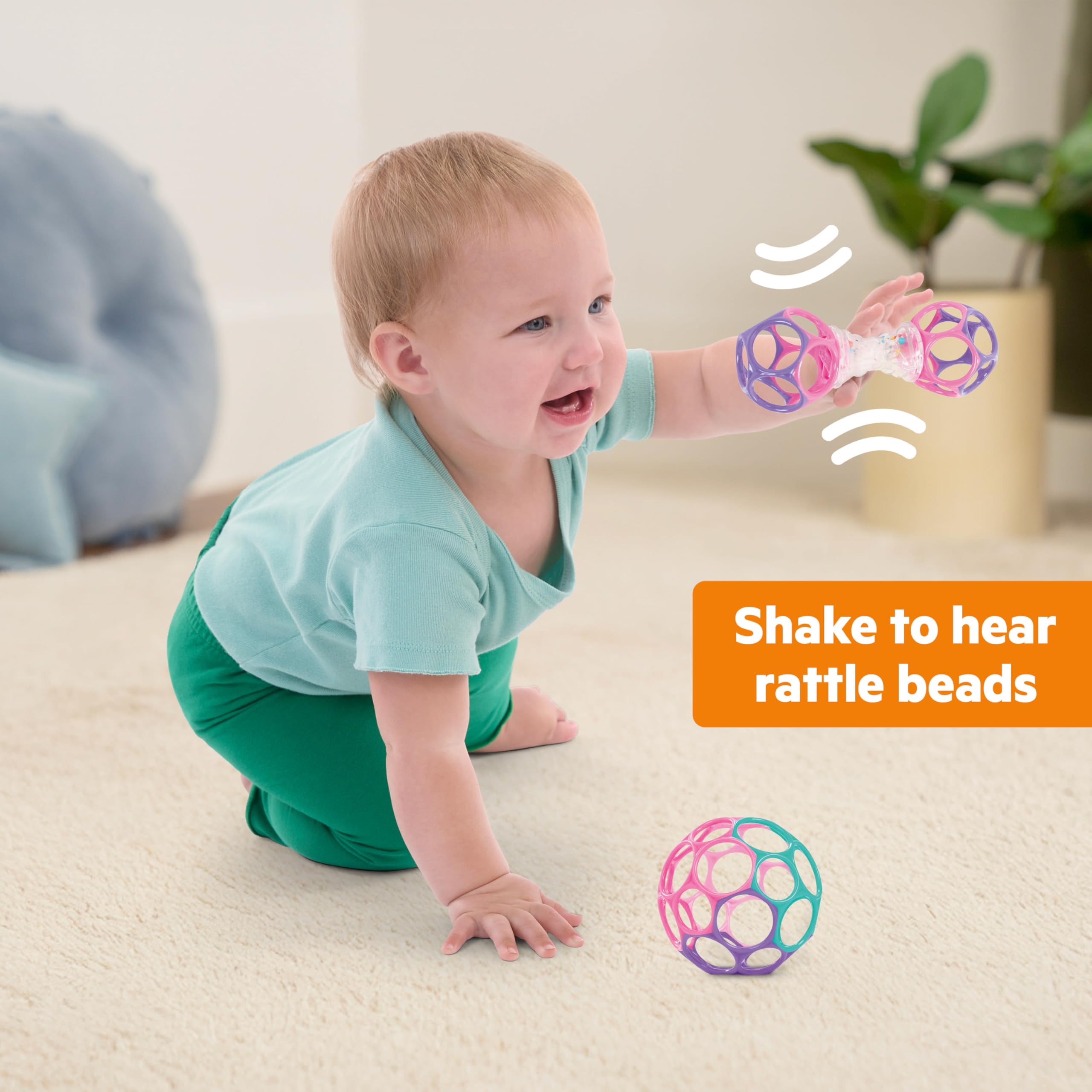 Shake the Oball Shaker with a clear, textured handle and brightly colored beads that babies love to hear and watch; graspable ends made of the highly flexible, durable Oball material