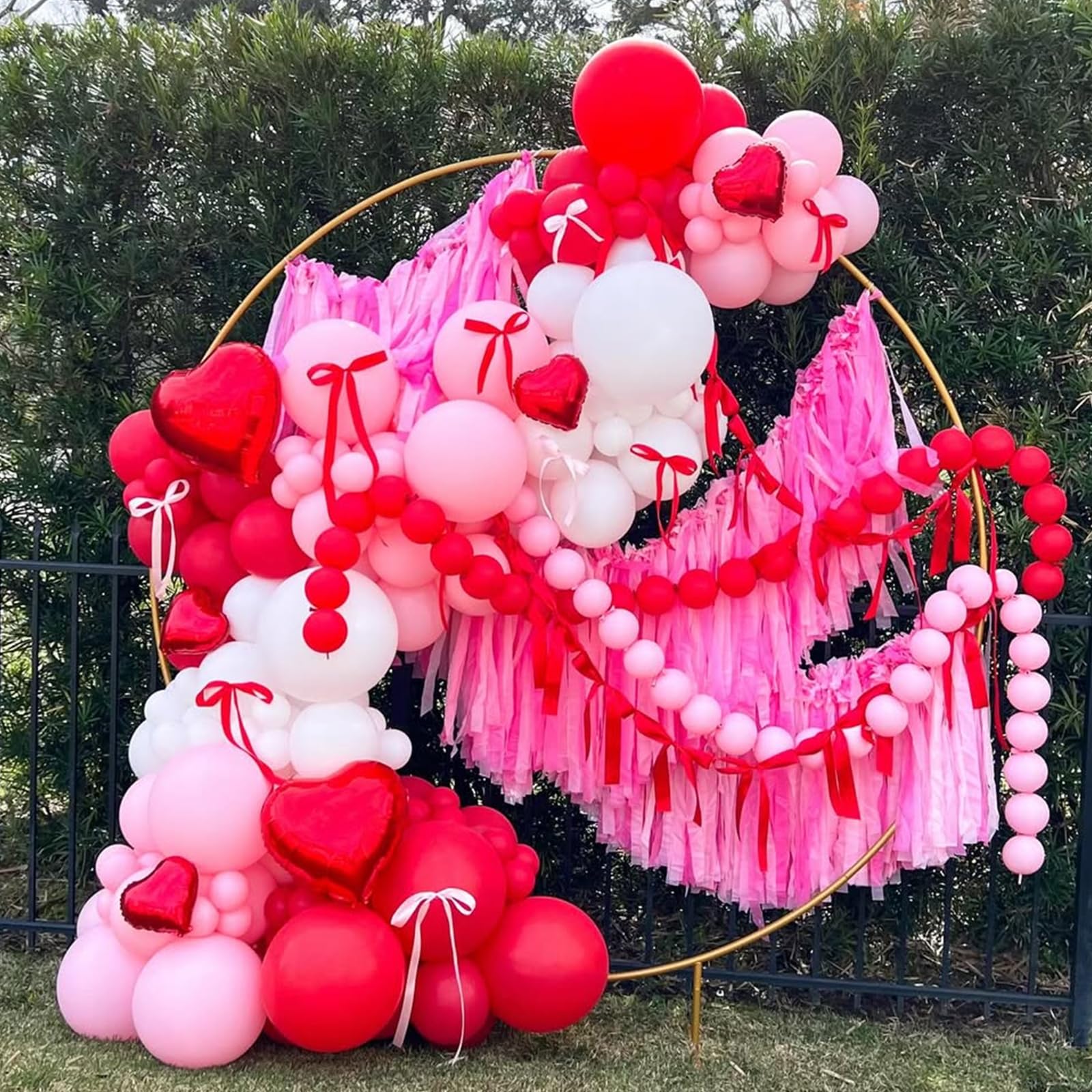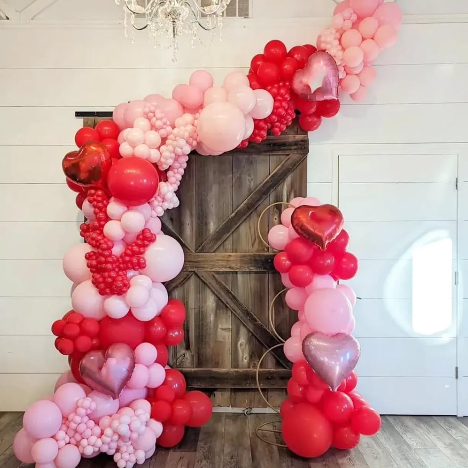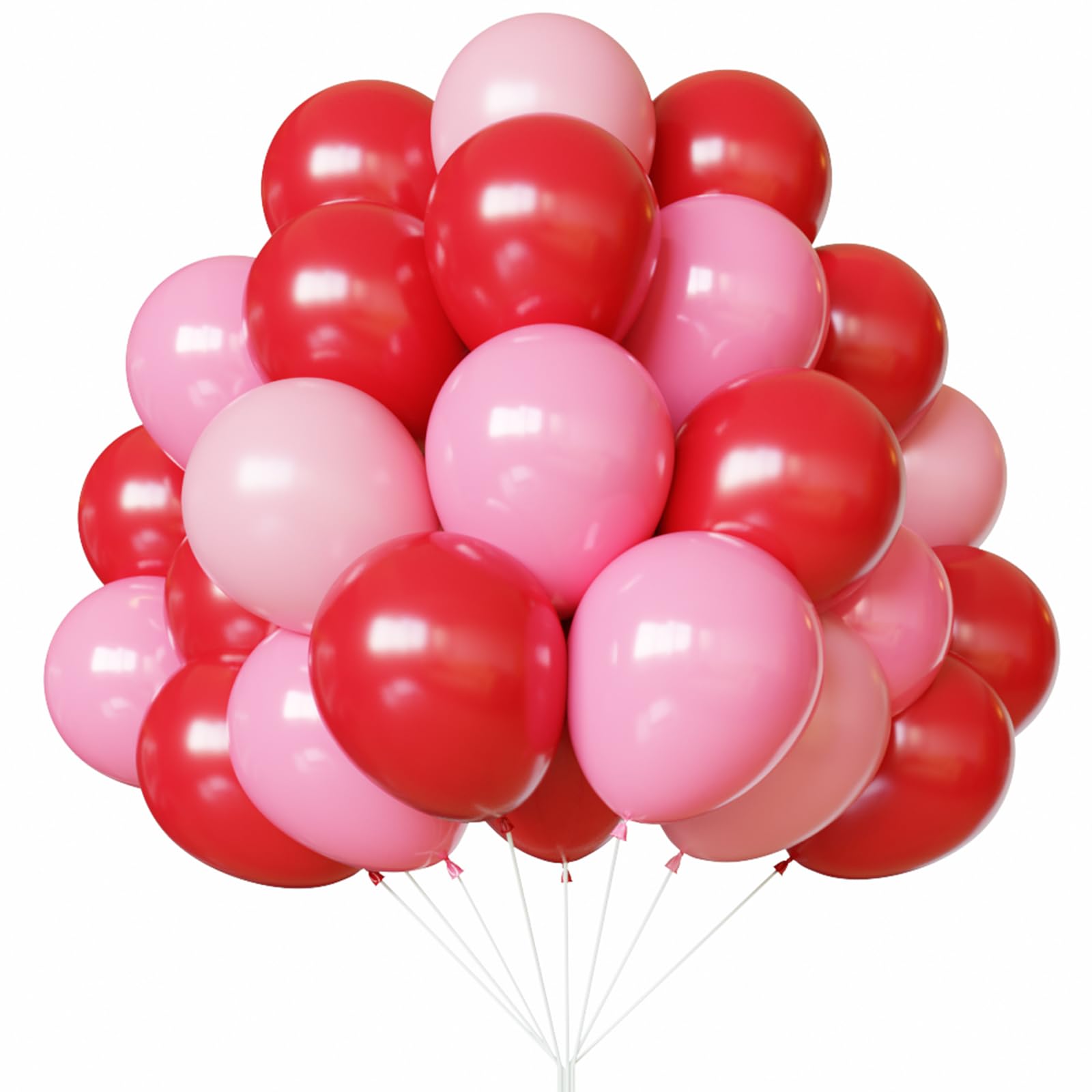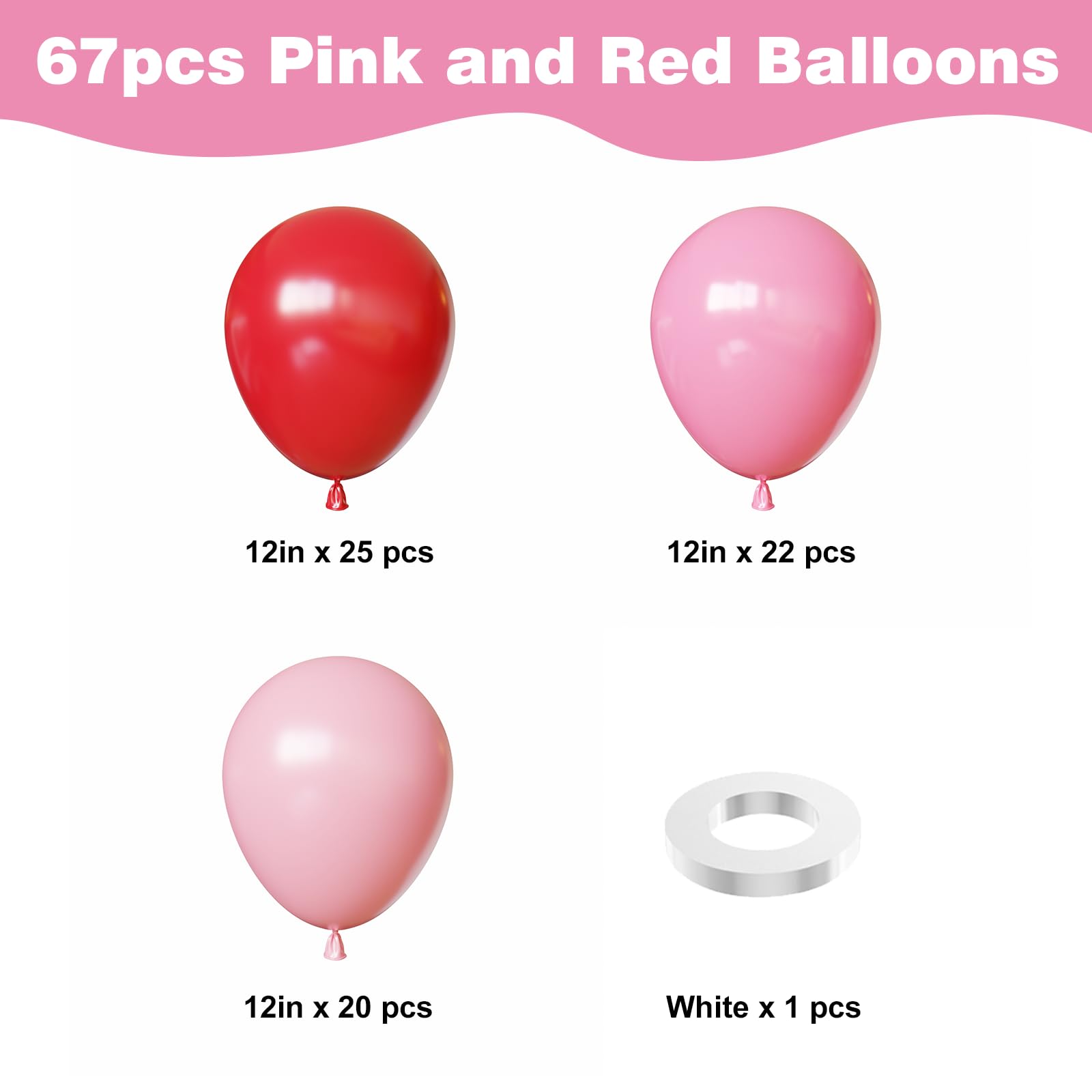 {All-in-One Kit} This red and pink balloon kit includes everything you need to create a stunning decoration, 25pcs red balloons, 22pcs pink balloons, 20pcs light pink balloons and 1 roll of white ribbons. The size of the balloon is about 12 inches after inflation. The combination of pink and red adds a touch of glamour to any party.
