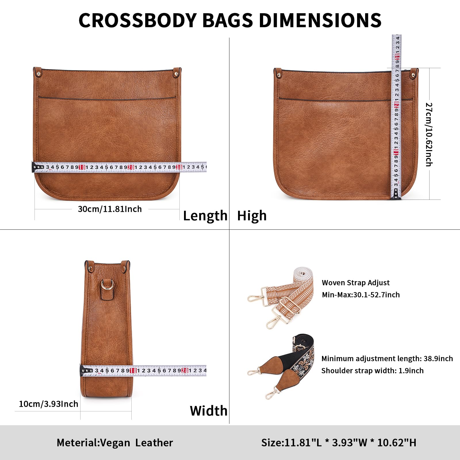 Crossbody Bag Dimension:This crossbody handbag dimension:(L) 12 x (W) 3.5x(H)10inch,weight about 0.61kg / 1.34pounds,and our leather crossbody bags for women is capable for storing many small daily necessities,such as wallet,phones,ipad,keys,cash,coins,sunglasses and makeup accessories,meet your large capacity needs