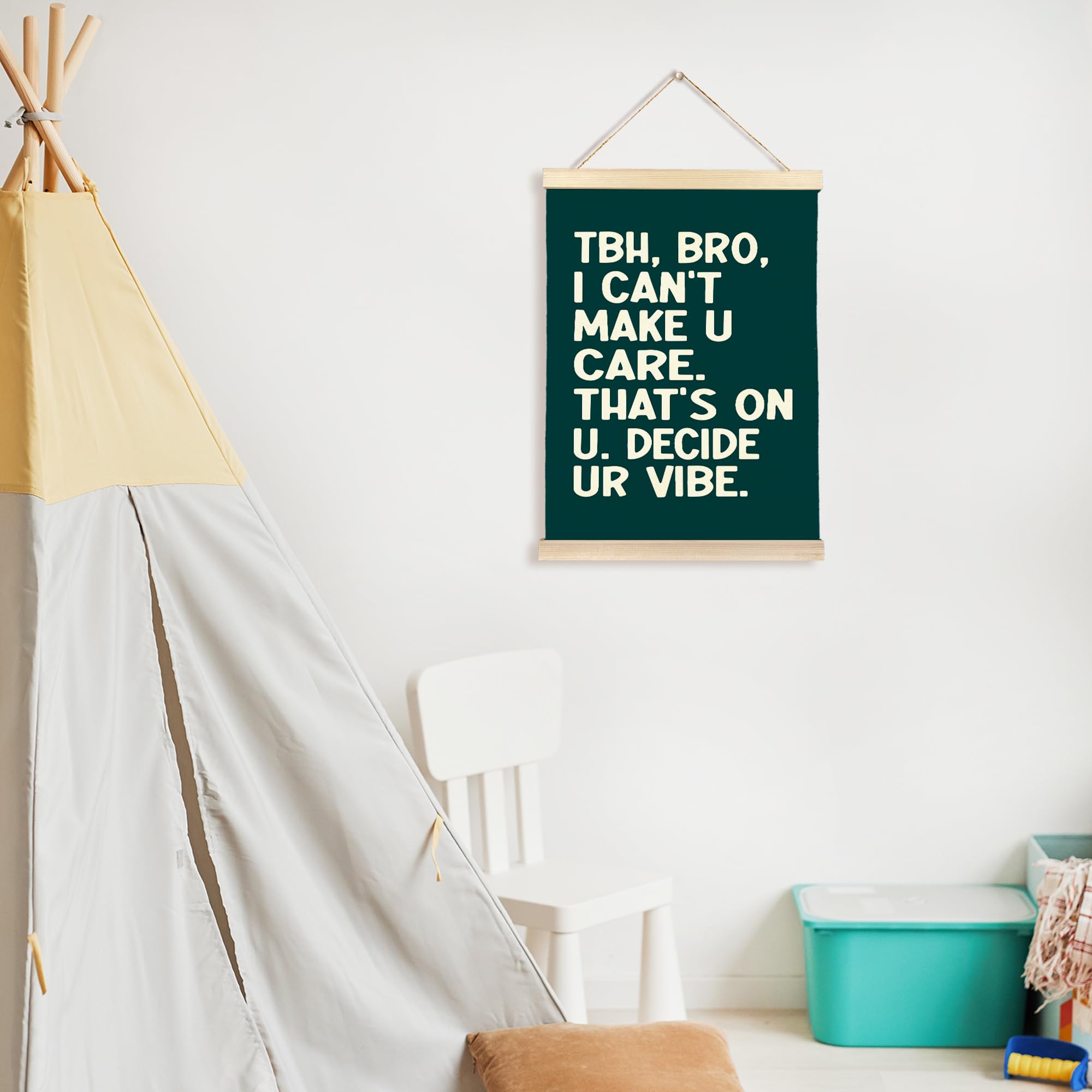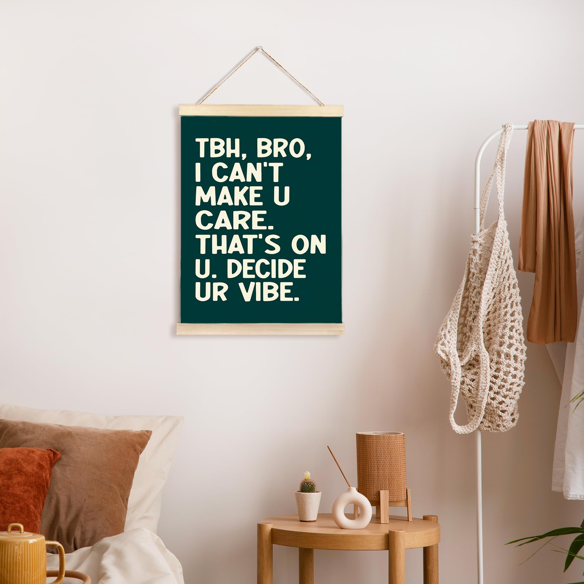 Printed on natural linen fabric with solid wood bars on top and bottom. The wooden frame provides durability, and the linen material enhances the overall aesthetic appeal.