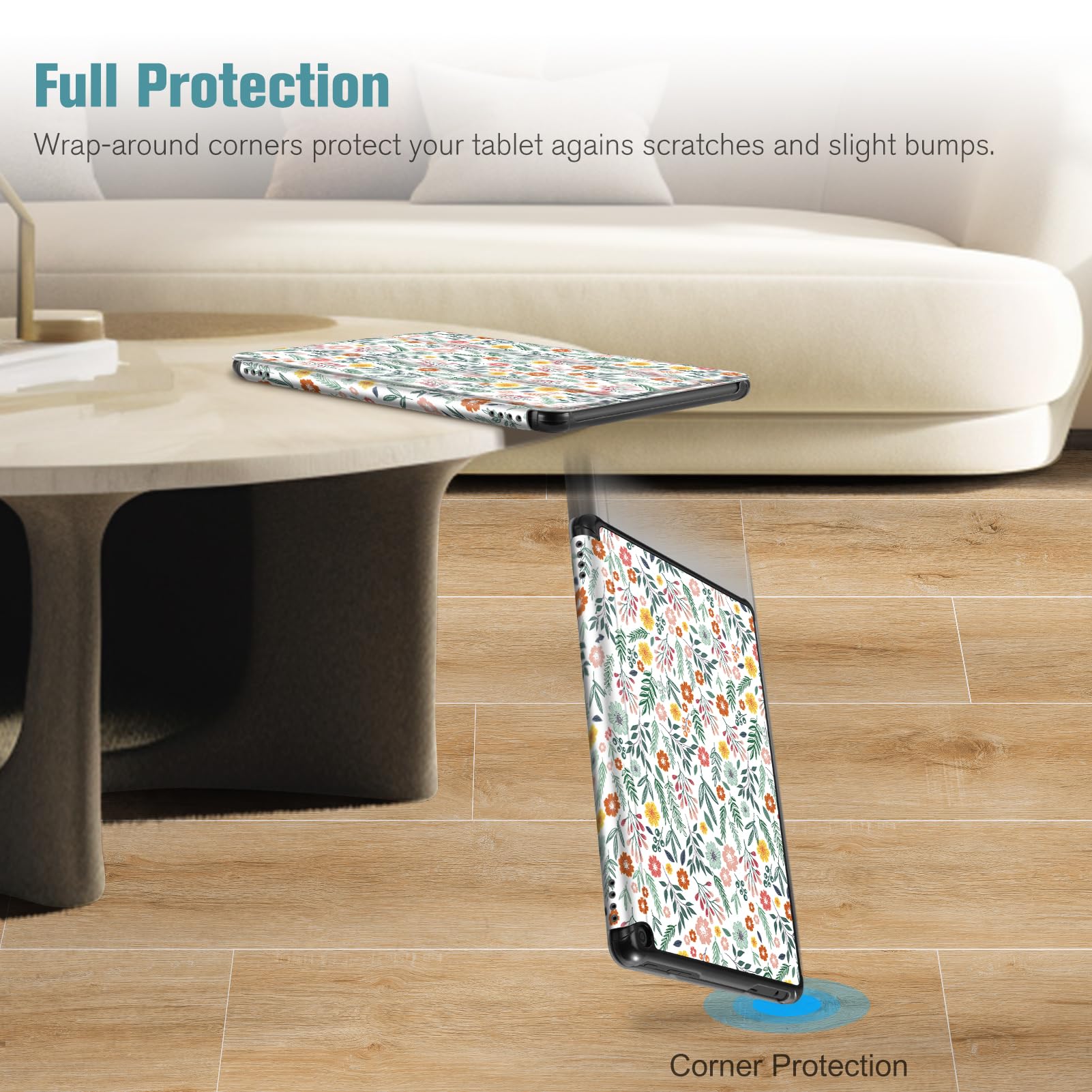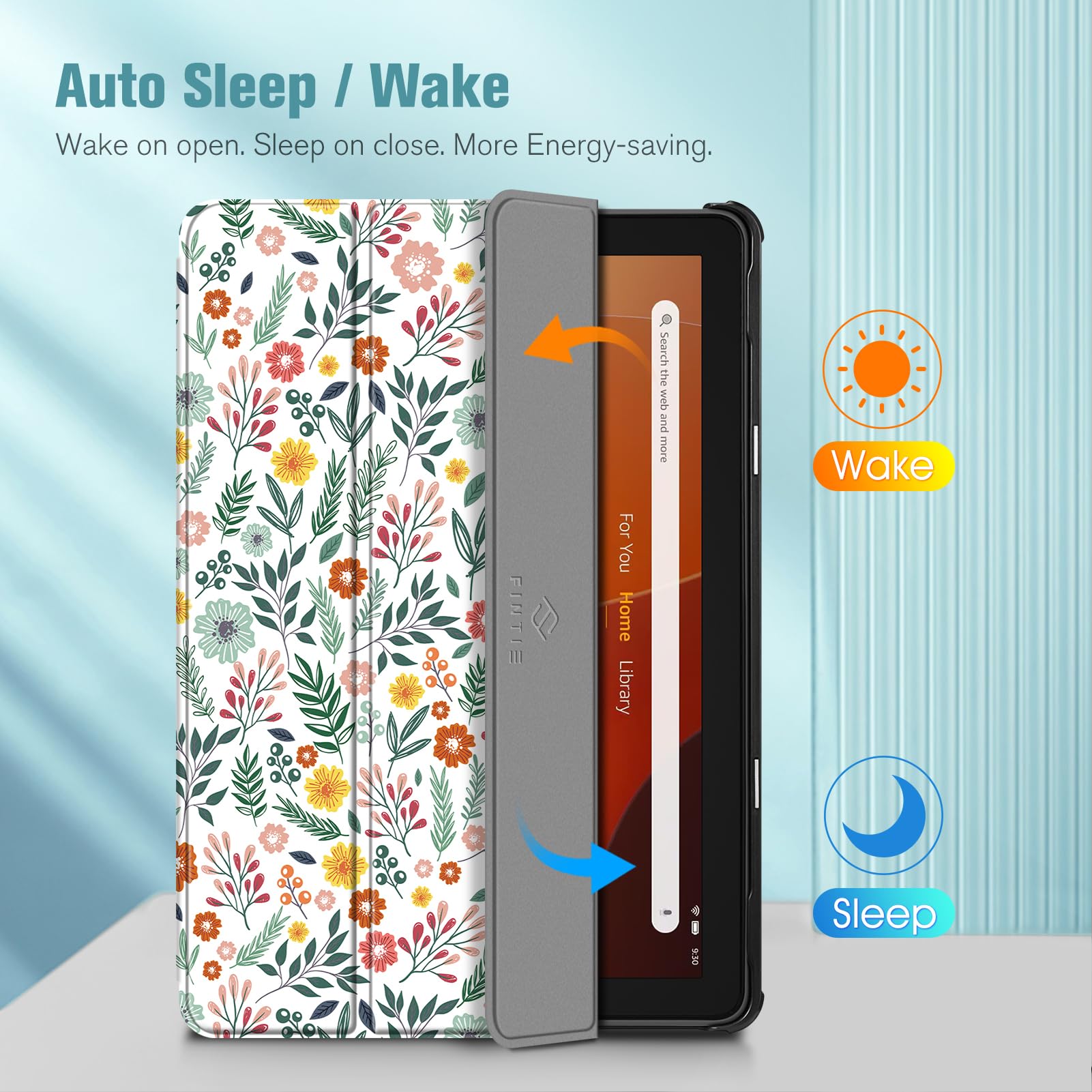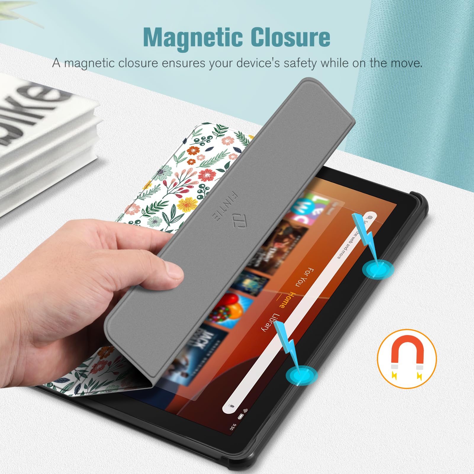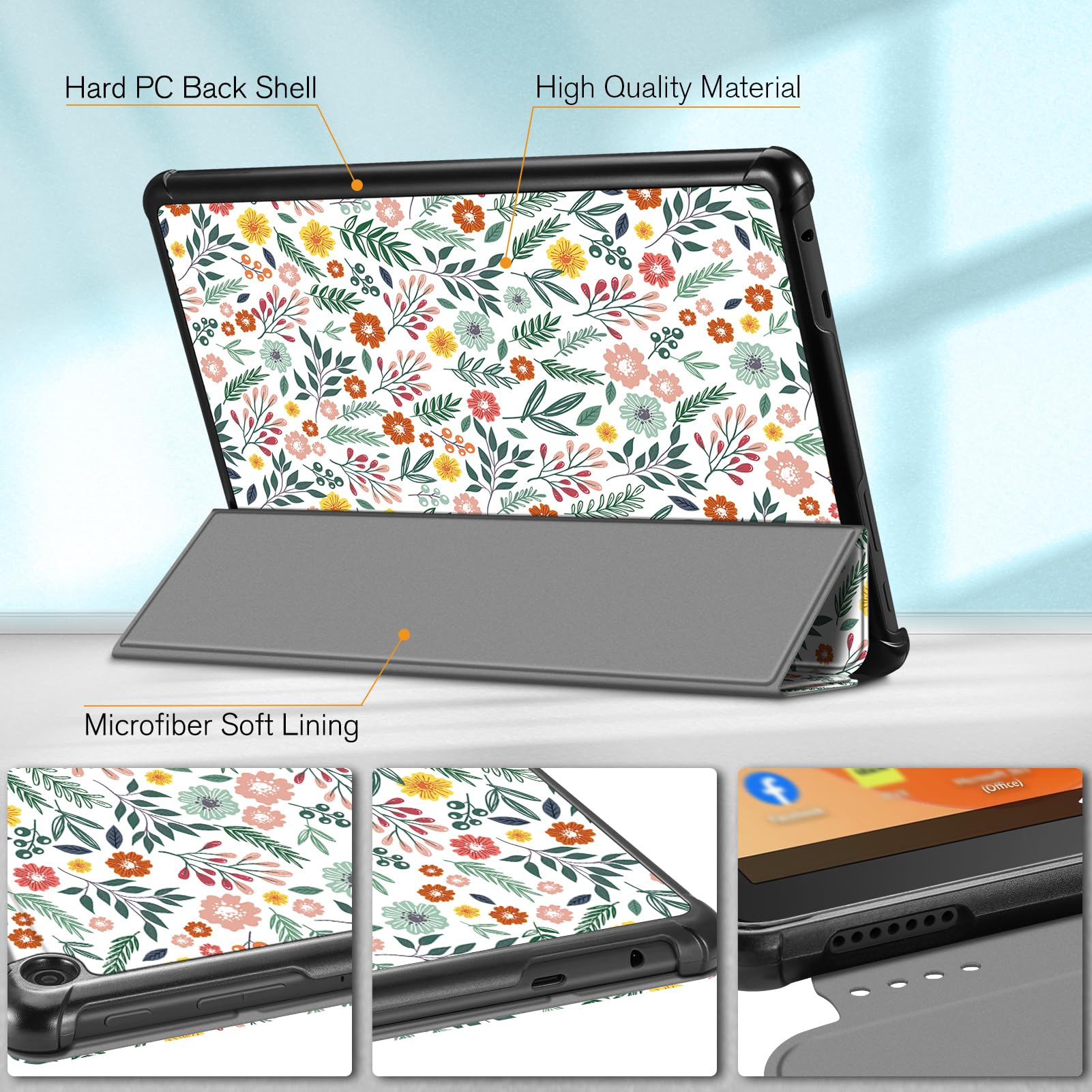 【Auto Wake / Sleep】Built-in magnetic strip provides sleep / wake feature, automatically wakes or puts your 10.1 inch Fire HD 10 2023 tablet to sleep. Magnetic Closure ensures the front cover is securely closed without straps covering the front.
