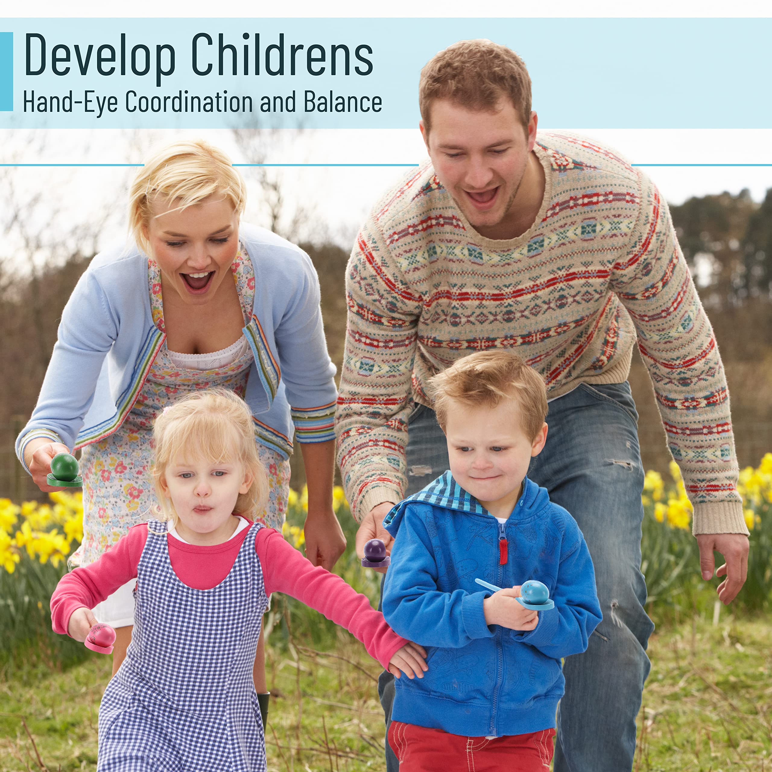 Our classic spoon race game set features an adorable Easter-themed style design. These are perfect for kids and adults, and they will bring fun and enjoyment to your family and friends.